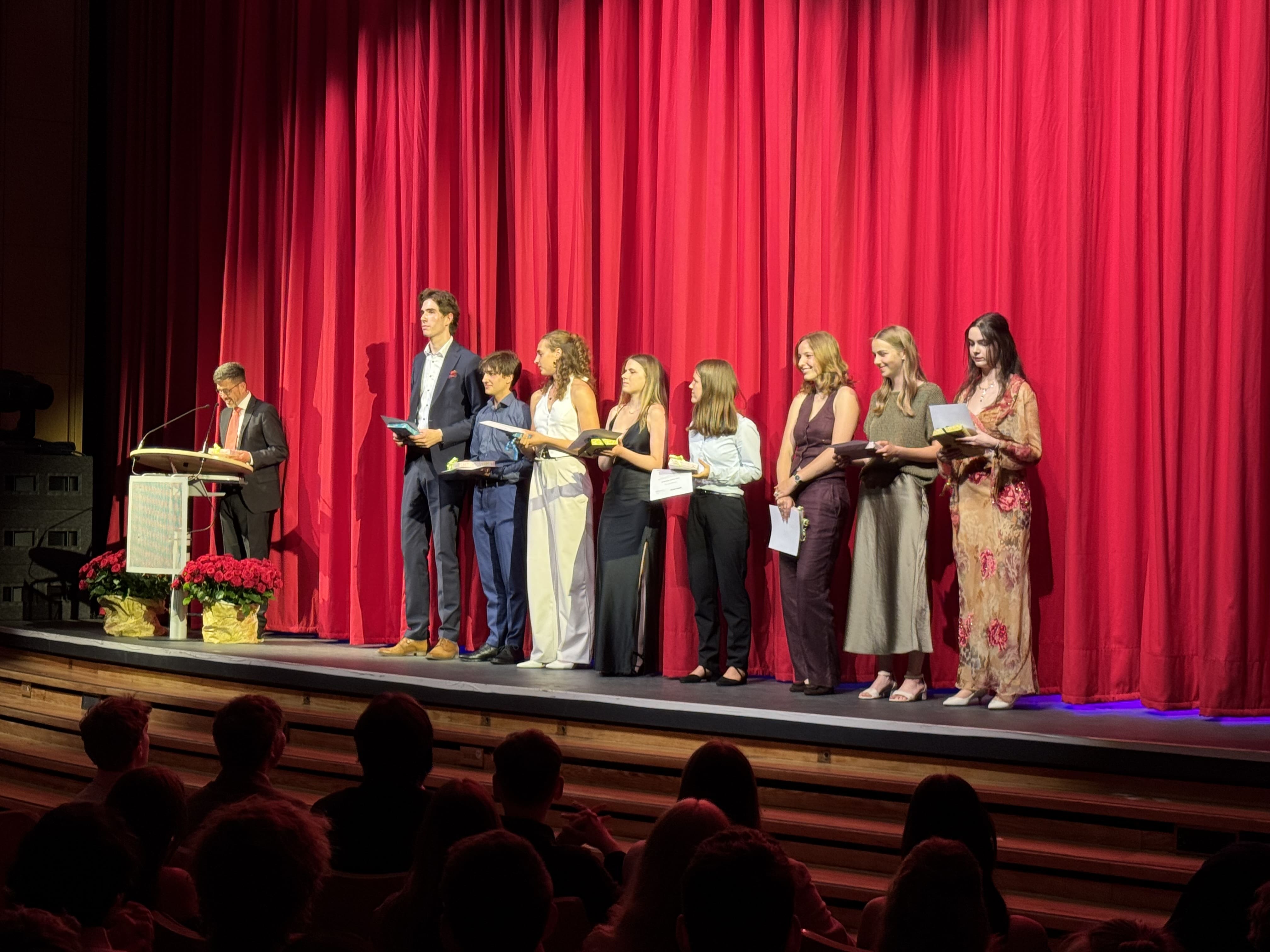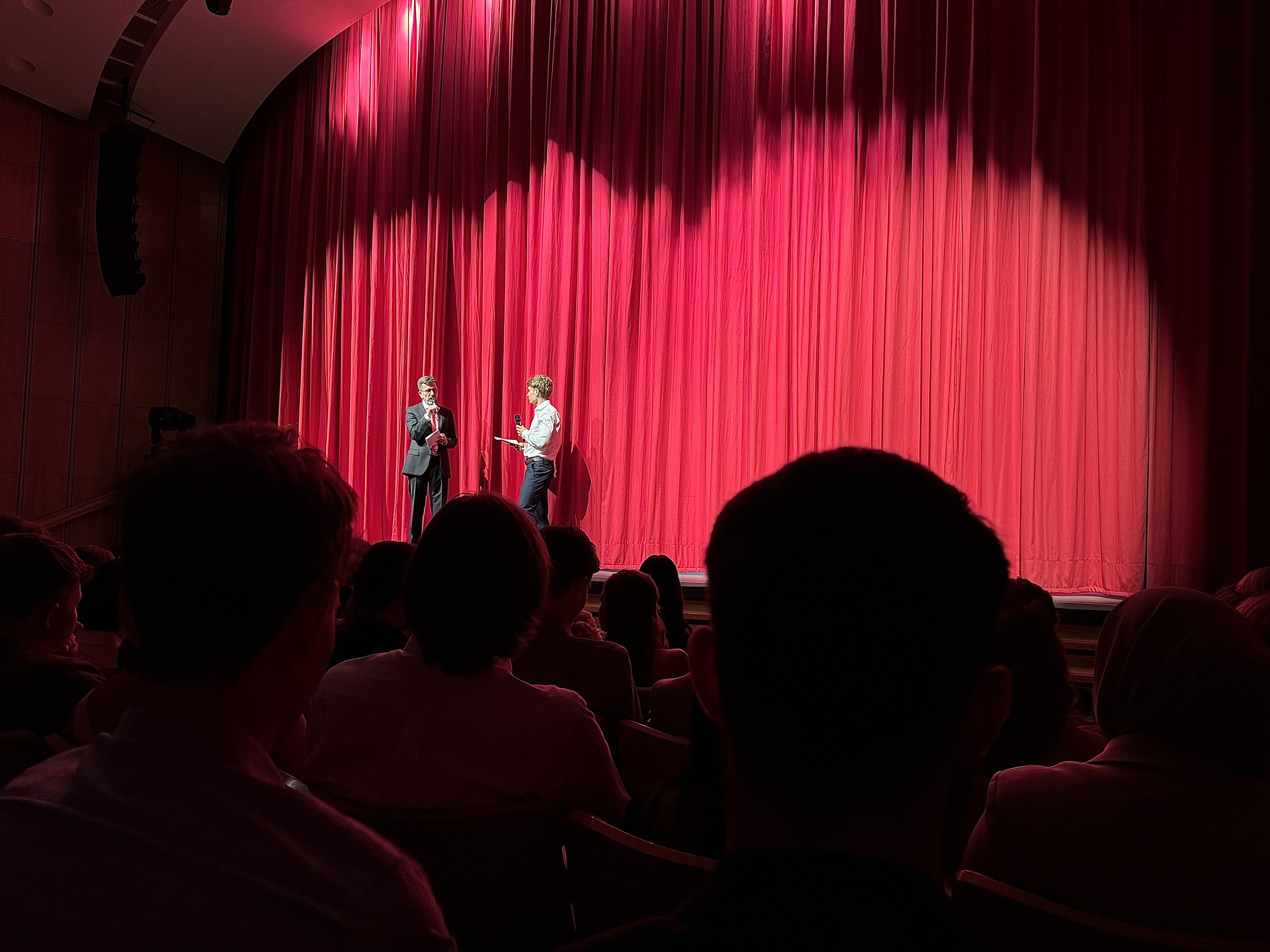 Eingerahmt von einem außergewöhnlich abwechslungsreichen Programm wurde schnell klar: Das hier war kein Pflichttermin, das war ein Fest der Gemeinschaft. Schon das Schulorchester bewies mit dem Solospiel von Abiturient Jona, dass wir musikalisch ganz oben mitspielen. Die dialogische Moderation zwischen dem Abiturienten Johannes und unserem Schulleiter Herrn Roth war dabei nicht nur spontan, sondern auch durchweg lebendig – ein roter Faden durch einen rund vierstündigen, aber niemals langweiligen Abend.