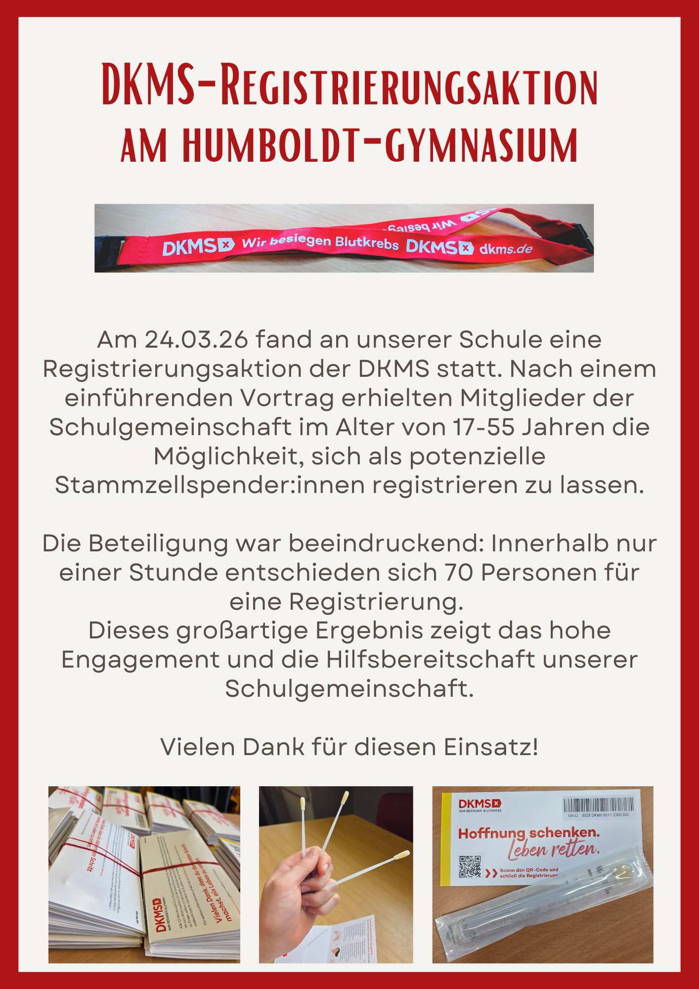Die Career Days am Humboldt-Gymnasium sind zurück! Nach einigen Jahren in digitaler Form fanden sie am 26. und 27. März 2026 wieder im Grünen Haus statt. Weiterlesen...