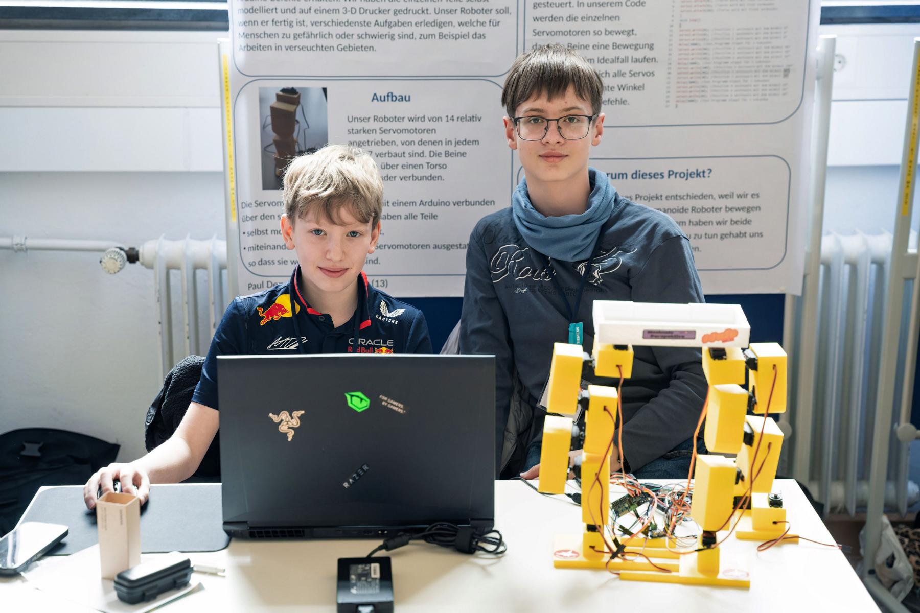 Wir gratulieren Leon und Paul aus der Klasse 7h, die beim Landeswettbewerb Jugend forscht mit ihrem Prototypen eines humanoiden Roboters im Fachgebiet Technik Jugend forscht junior den Sonderpreis plus-MINT für ein interdisziplinäres Projekt und eine Einladung zu einem einwöchigen Forscher-Camp gewonnen haben.