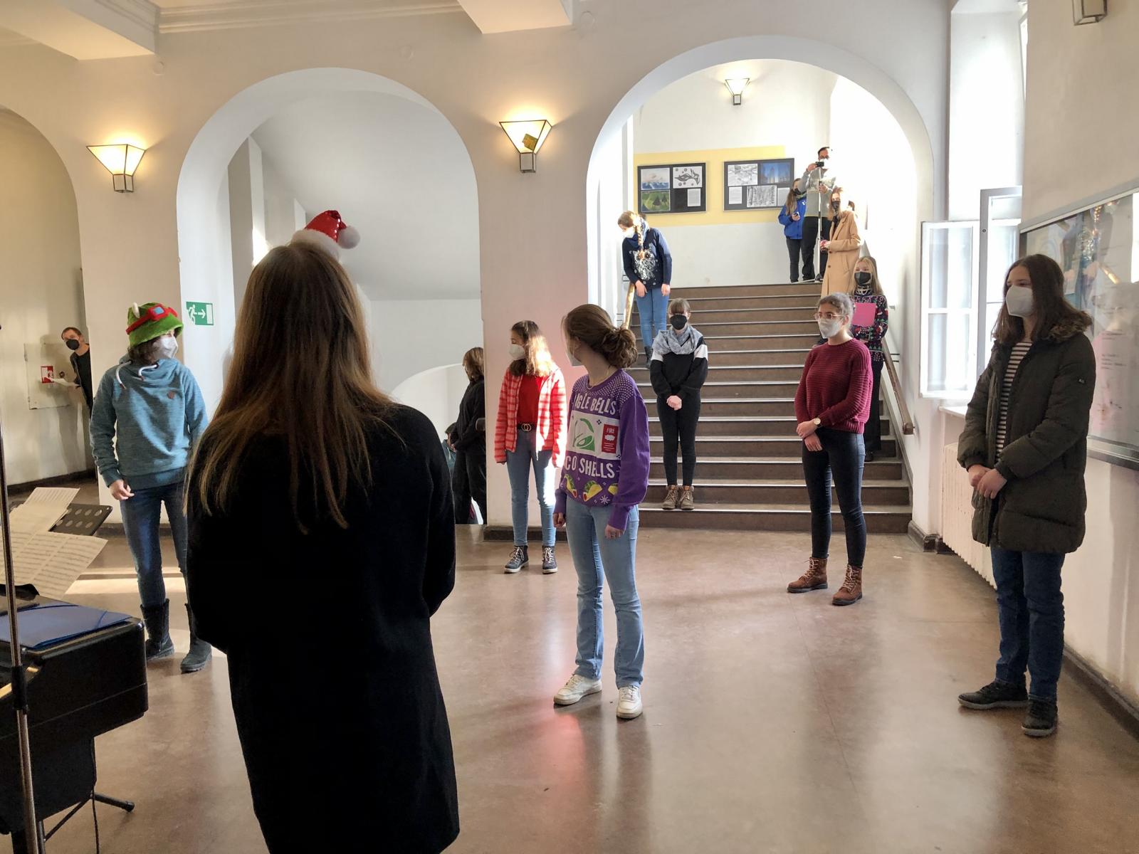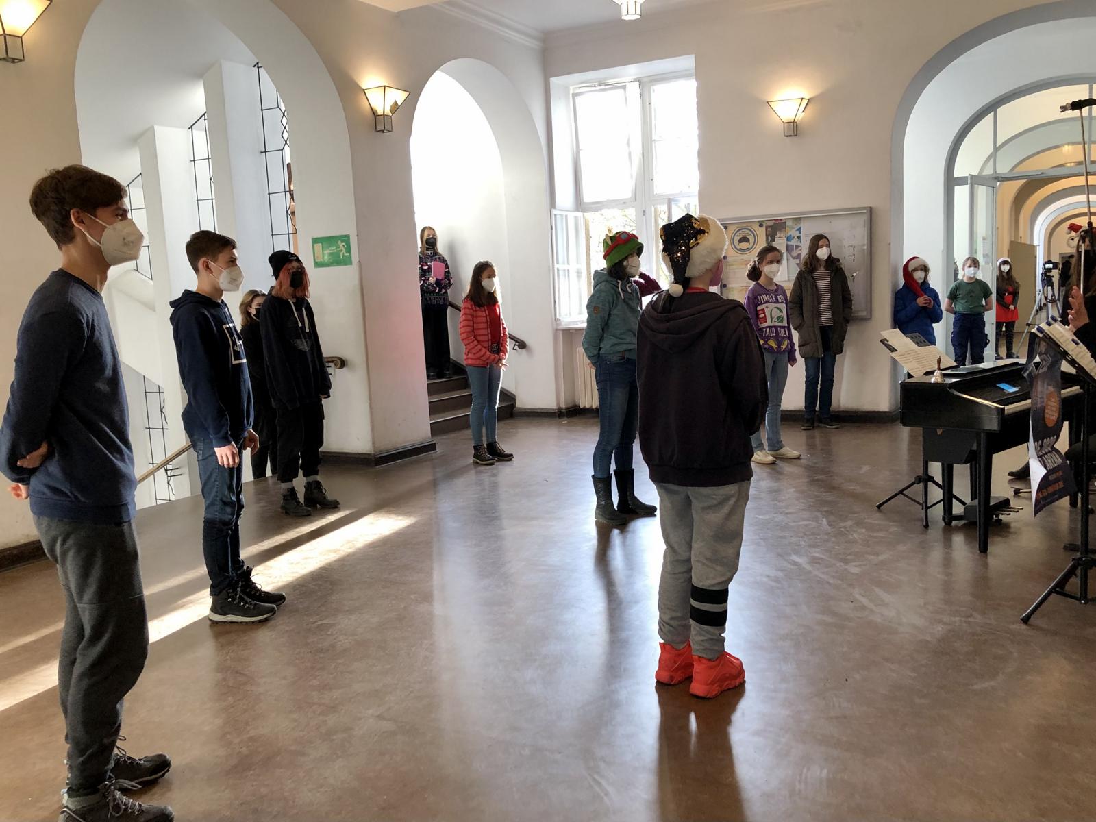 Auch wenn wir in diesem Jahr nicht wie früher mit allen gemeinsam in der Aula singen durften, wollte es sich der Fachbereich Musik nicht nehmen lassen, die Schulgemeinschaft mit einem kleinen musikalischen Gruß auf die Zeit zwischen den Jahren festlich einzustimmen. Alle, die interessiert, wie unser Weihnachtsgruß im letzten Jahr aussah, finden diesen hier.