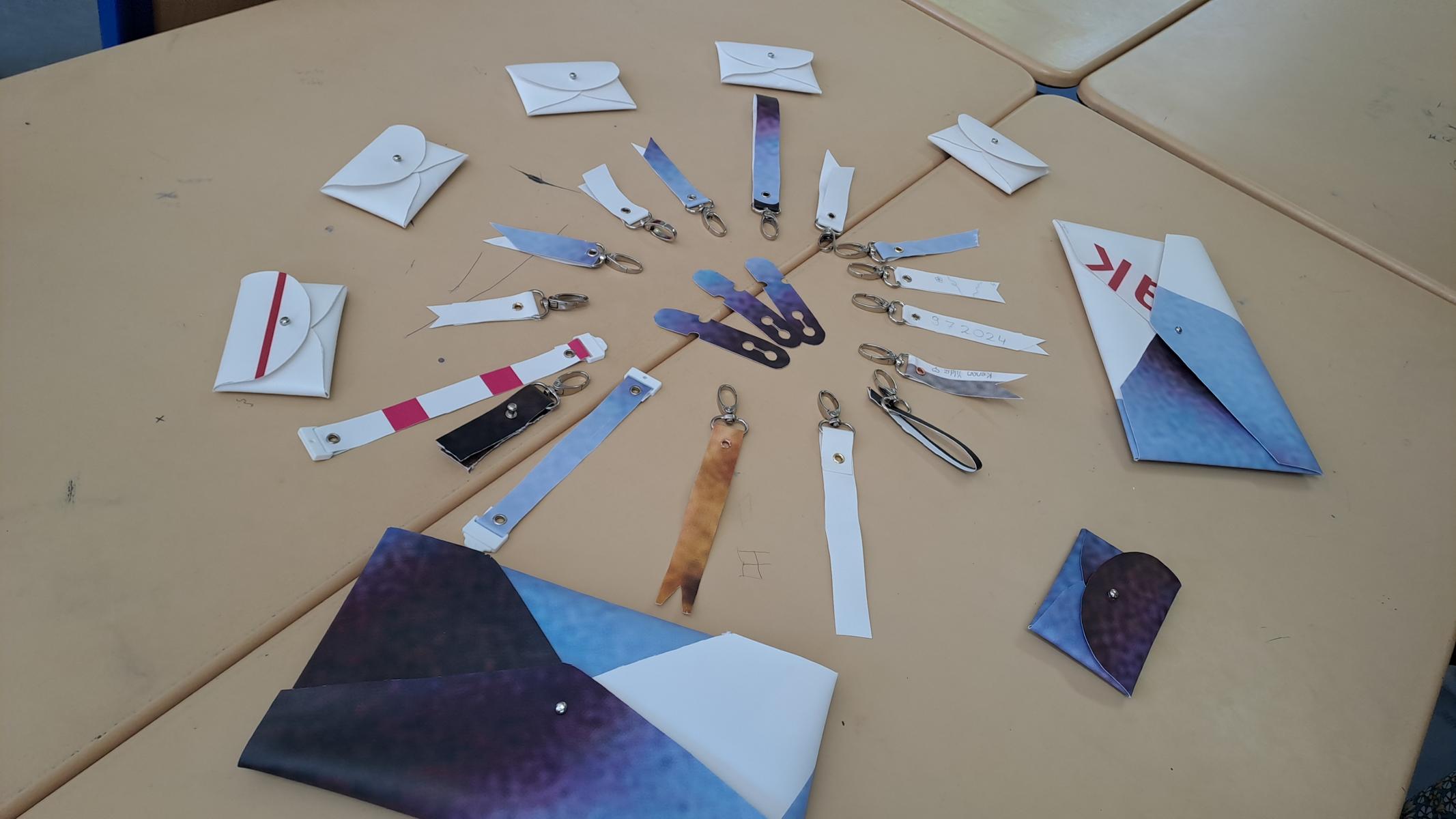 Upcycling Workshop der Klasse 8c am 10.07.: Aus Werbebannern werden Taschen, Anhänger und Kabelbändiger