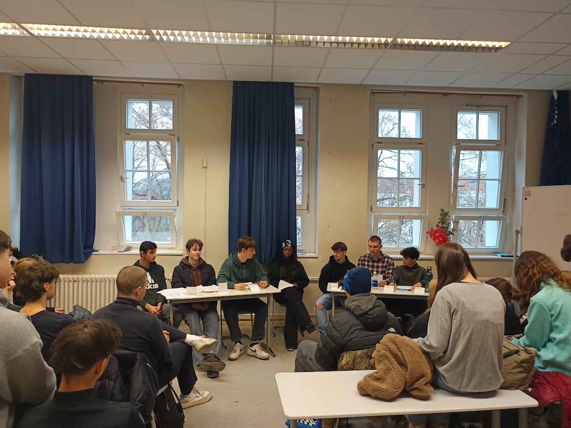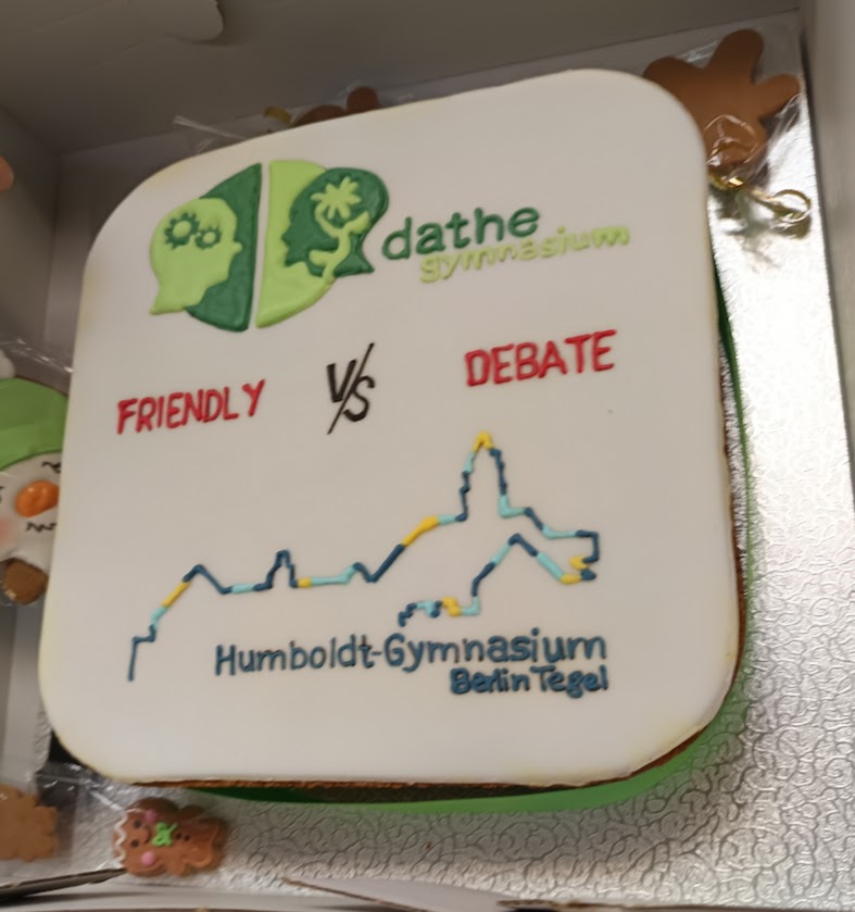 Am Montag, dem 16.12.2024 nahm unser Leistungskurs Englisch erstmals am Debathon teil – dem neuen „friendly debate“-Event des Dathe-Gymnasiums, initiiert von Herrn Mücke, dem dortigen Schulleiter und ehemaligen Kollegen. In enger Zusammenarbeit unserer beiden Schulen, inspiriert vom erfolgreichen Makeathon und unserer Humbate, konnten die Schüler:innen erste Erfahrungen im Debattieren sammeln und ihre Argumentationsstärke unter Beweis stellen.