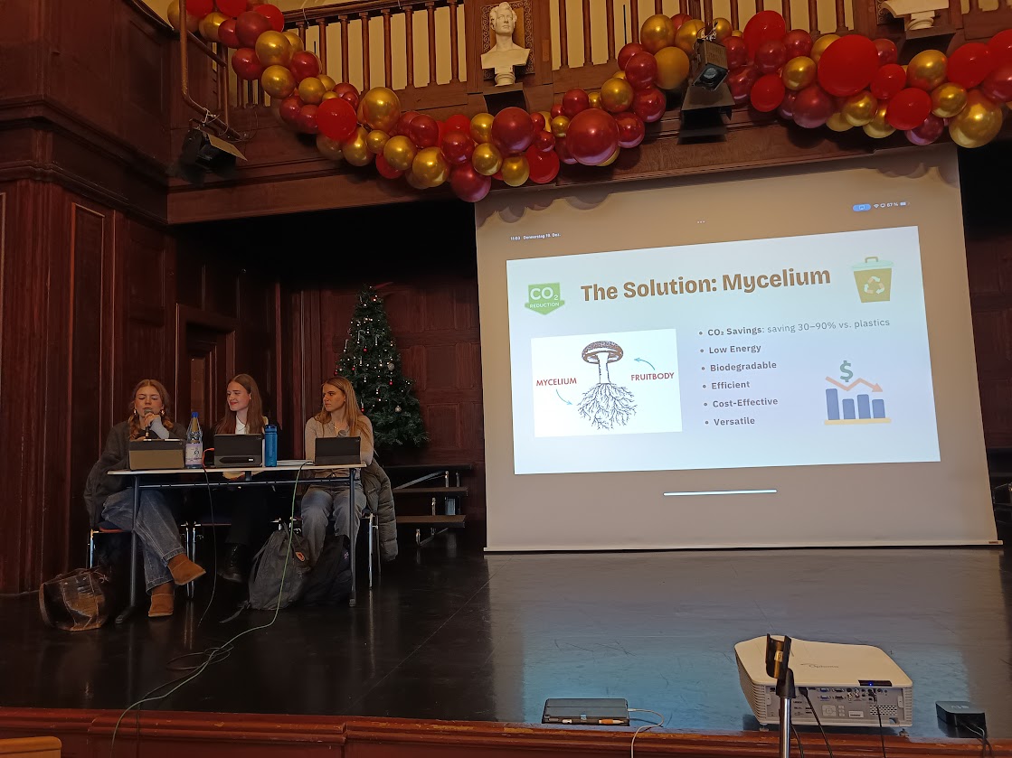 Der Höhepunkt des Tages war die Siegerehrung: Greta, Alicia und Ella aus dem Englisch-LK von Herrn Dr. Höllering sicherten sich mit ihrem Projekt Mushroom Packaging den ersten Platz. Ihr innovativer und nachhaltiger Ansatz begeisterte das Publikum. Ein besonderer Dank geht an Jakob, der die technische Unterstützung des Events exzellent umsetzte, sowie an Frau Reichardt, die das Präsentations-Coaching der Finalist:innen tatkräftig unterstützte.