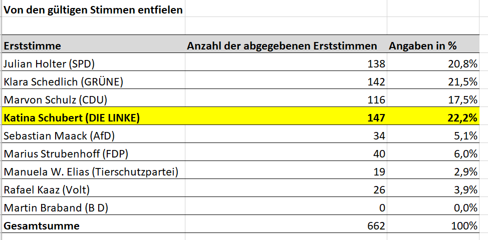 Am 21.02.25 haben 20 fleißige Helfer/innen alle 676 Wahlzettel ausgezählt und sind zu den folgenden Ergebnissen für unsere Schule gekommen: