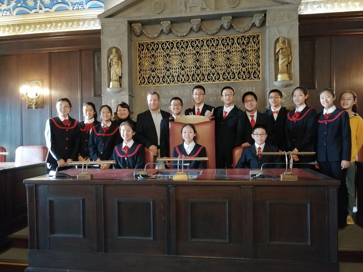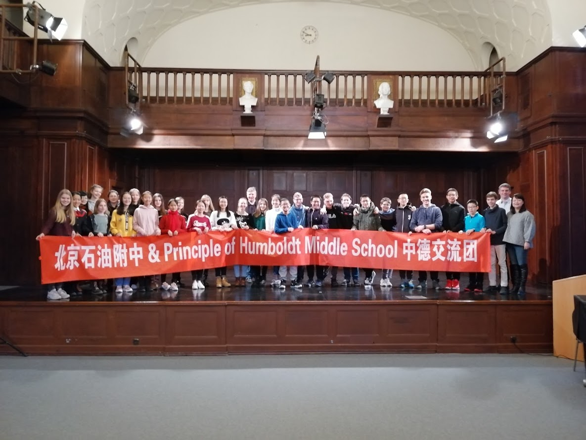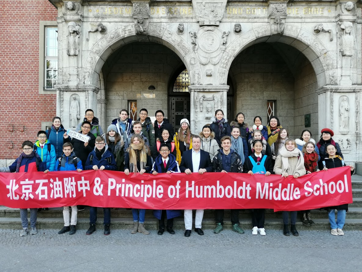 Unser China-Austausch geht nun ins 17. Jahr und dieses Mal hatten wir 15 chinesische Schüler und zwei chinesische Lehrerinnen unserer neuen Partnerschule The Middle School attached to the Beijing College of Petroleum bei uns zu Gast. Die chinesischen Schüler wurden sehr herzlich bei den deutschen Gastfamilien aufgenommen, genauso wie auch unsere Schüler sehr herzlich und gastfreundlich bei den chinesischen Familien in Peking im Oktober empfangen wurden. Die chinesischen Partner besuchten uns vom 20.-28.1.2019 und absolvierten gemeinsam mit den deutschen Partnern ein abwechslungsreiches Besuchsprogramm in Berlin. Im Januar wurde die Gruppe traditionell von dem Reinickendorfer Bürgermeister Herrn Balzer im Rathaus empfangen: