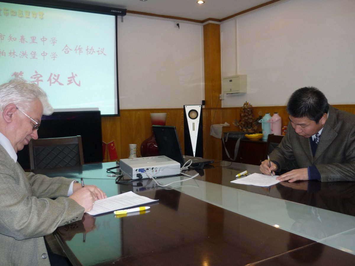 Seit mehr als 14 Jahren hat die Humboldtschule eine sehr gut funktionierende und überaus freundschaftliche Partnerschaft mit der Zhi Chun Li Middle School in Peking. Jedes Jahr empfangen wir ca. 16 chinesische Gastschülerinnen und -schüler und zwei bis drei chinesische Lehrer bei uns für ca. 10 Tage zu Beginn des Schuljahres, die bei den deutschen Familien untergebracht werden. Einen Pressemitteilung mit Fotos über den Besuch im September 2017 findet Sie hier.