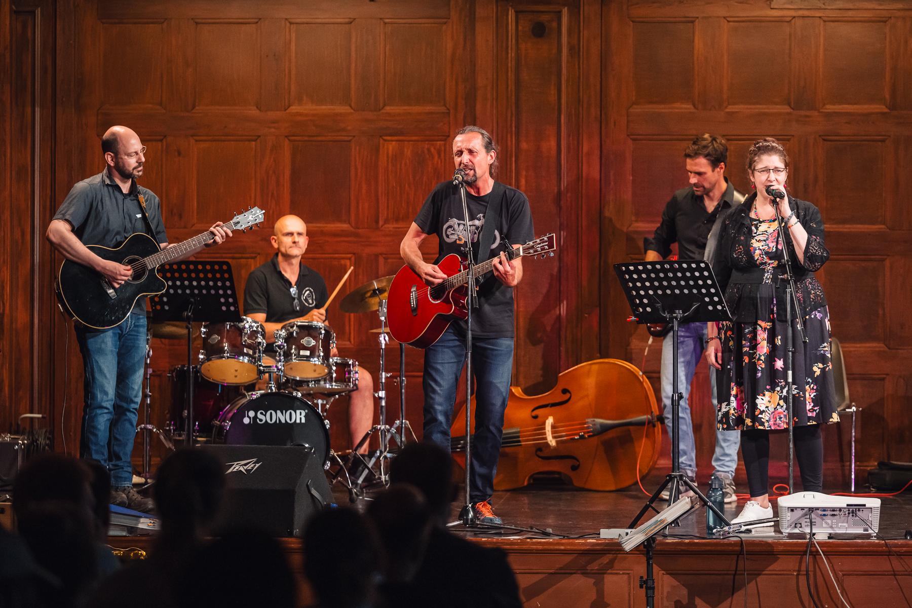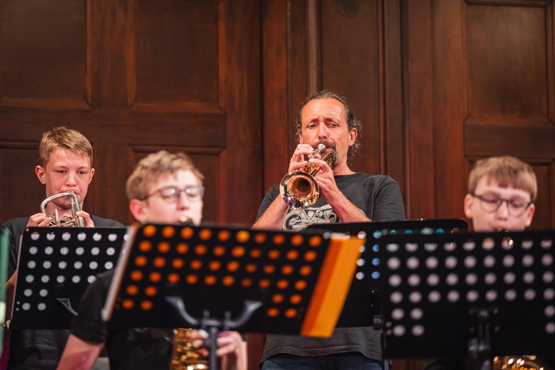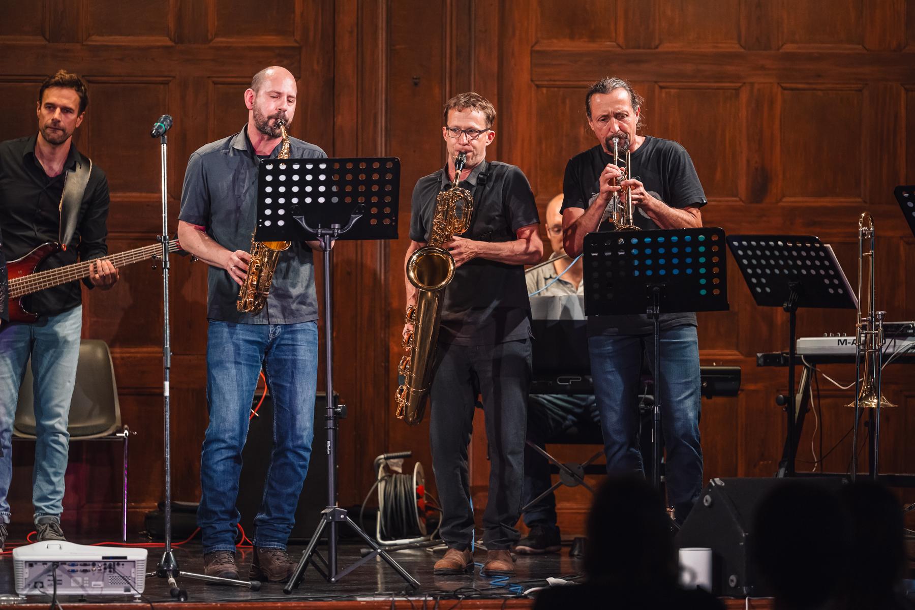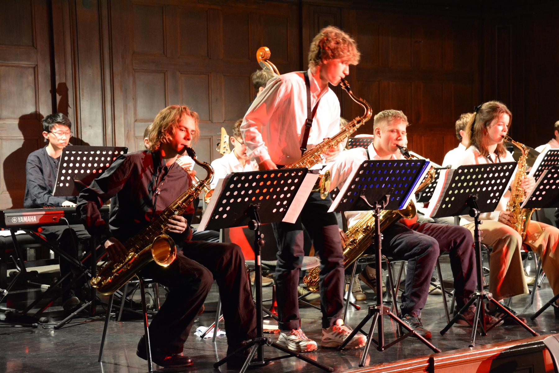 Die Humboldt JazzXplorers (Jazzband des Humboldt-Gymnasiums) haben bei schönstem Wetter die 21. Reinickendorfer Bigband-Night auf dem Hof der Benjamin-Franklin-Schule eröffnet.