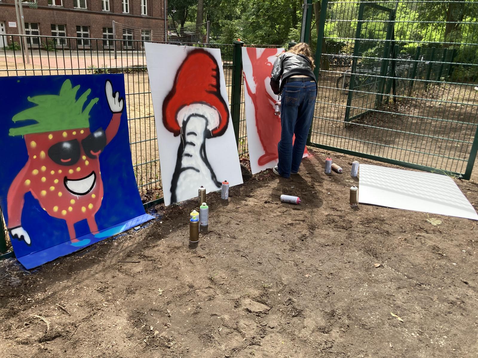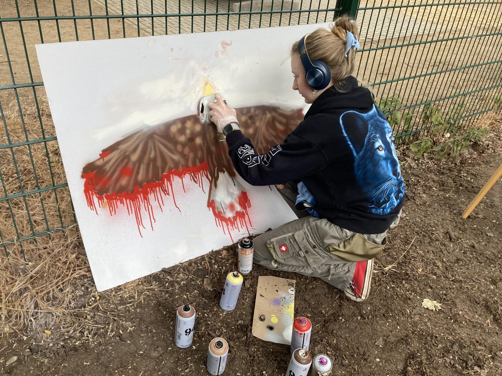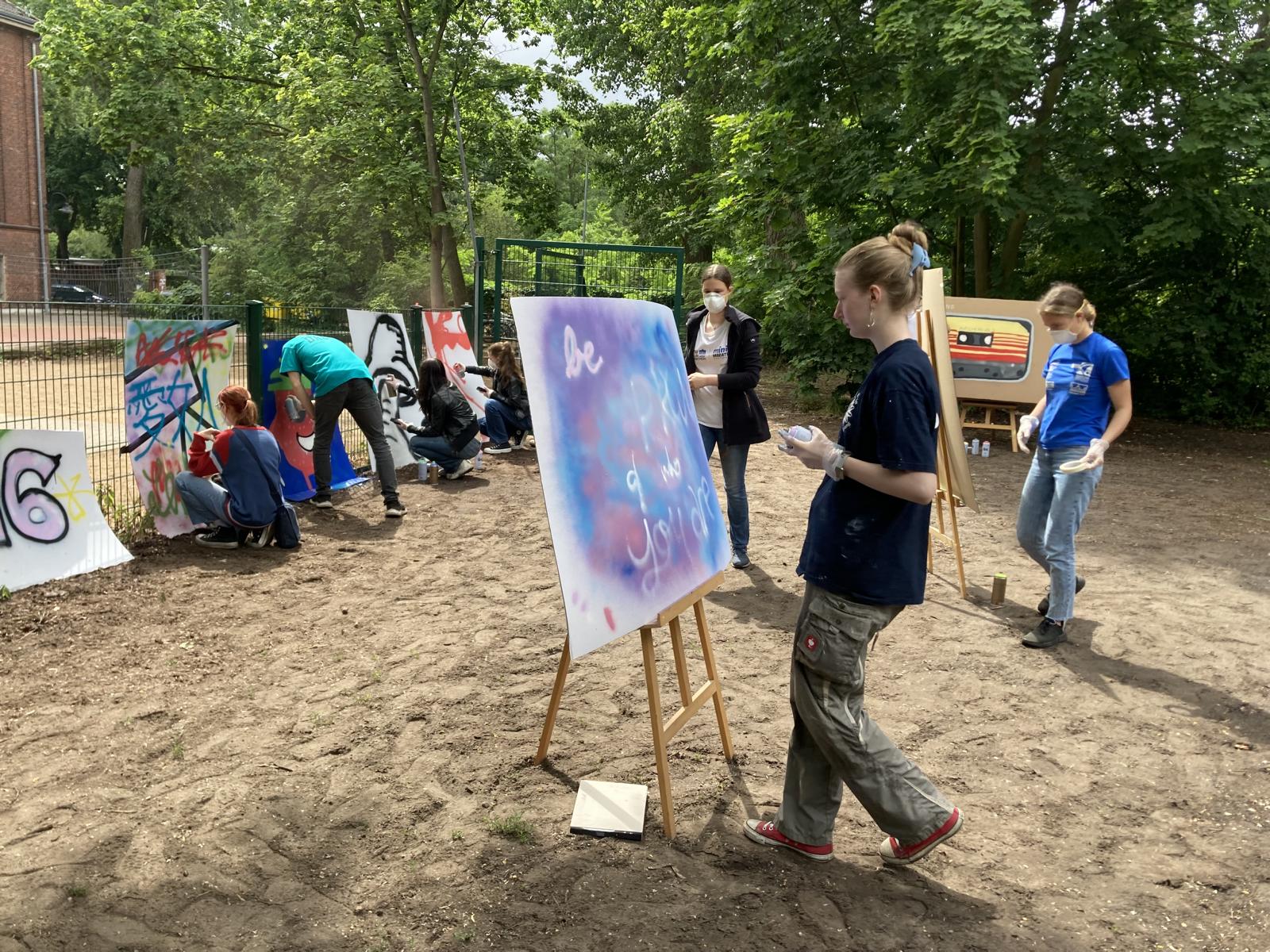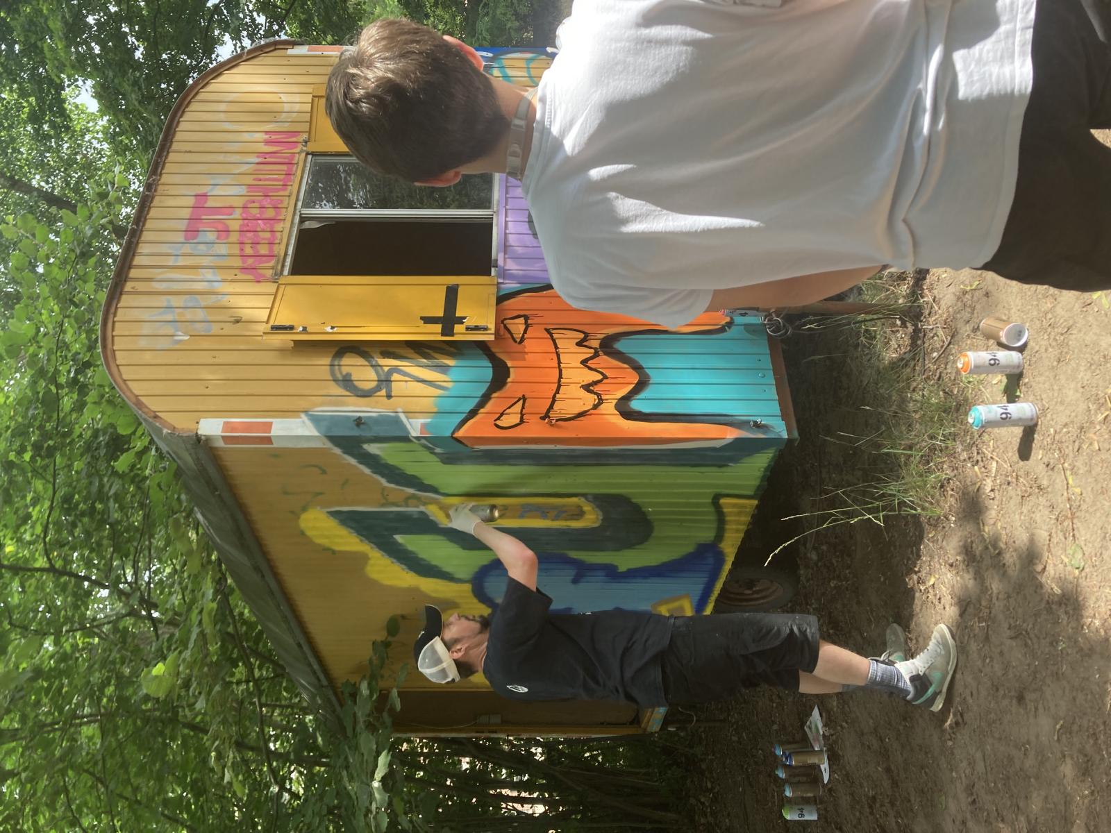 28.06. Endlich mal SPRAYEN! 12 Schüler:innen der Klasse 10h beim Graffiti-Workshop