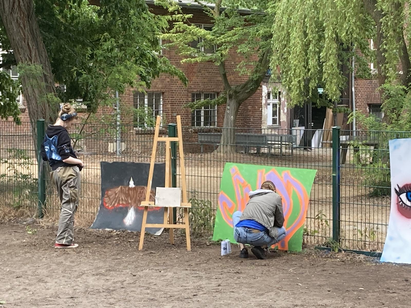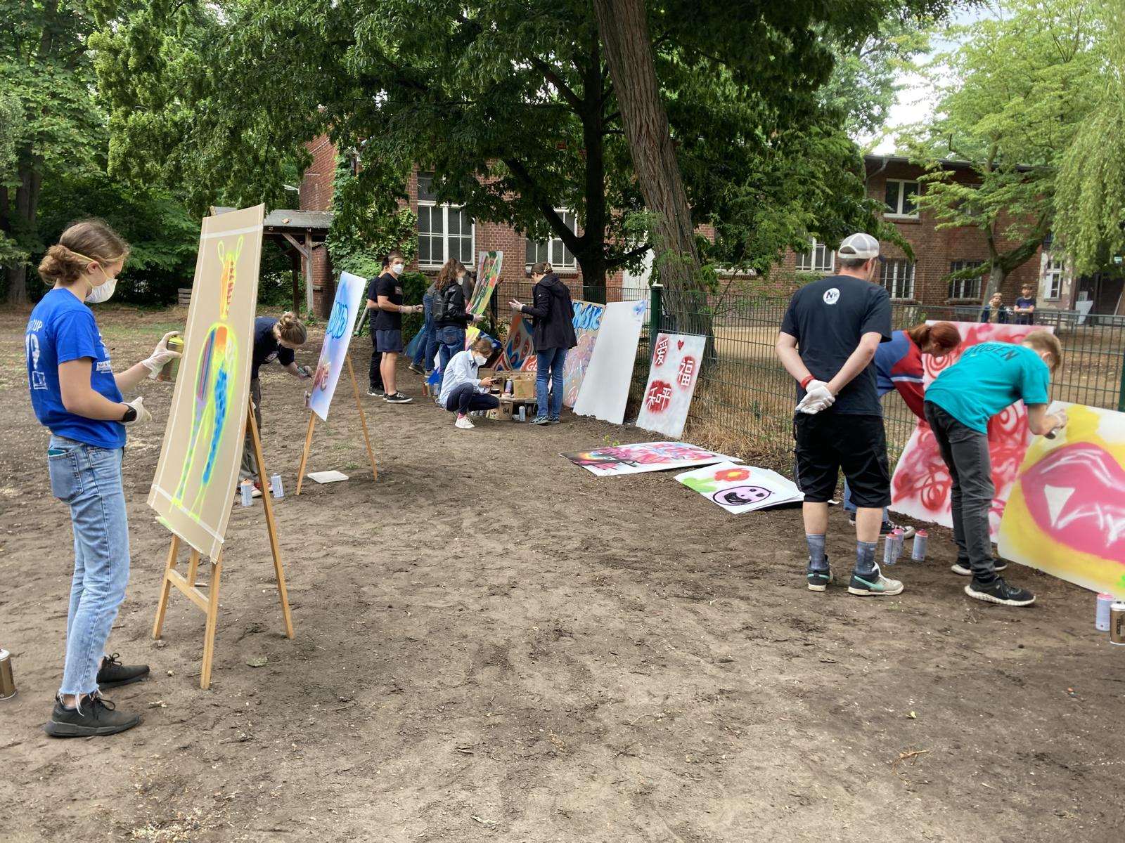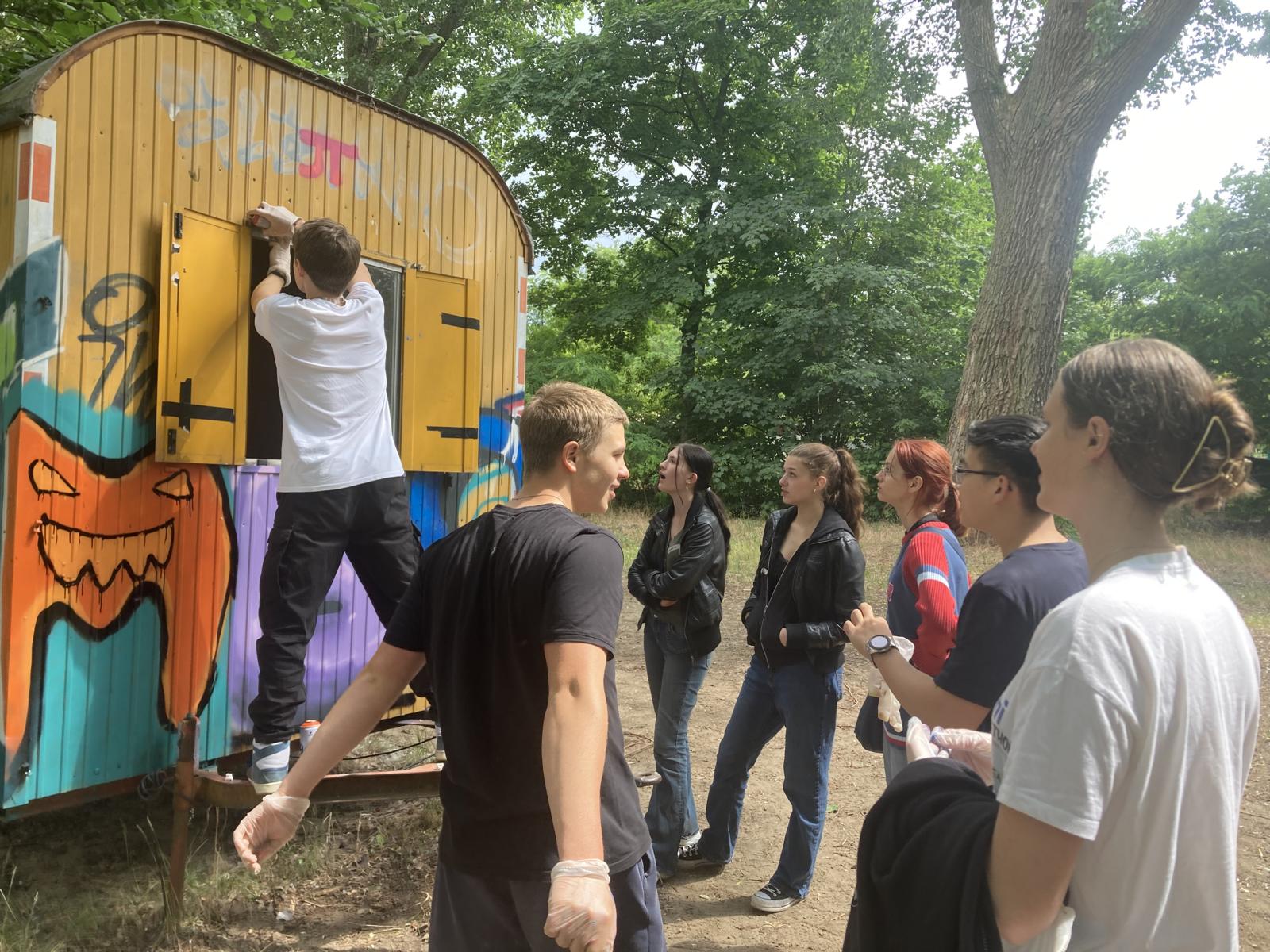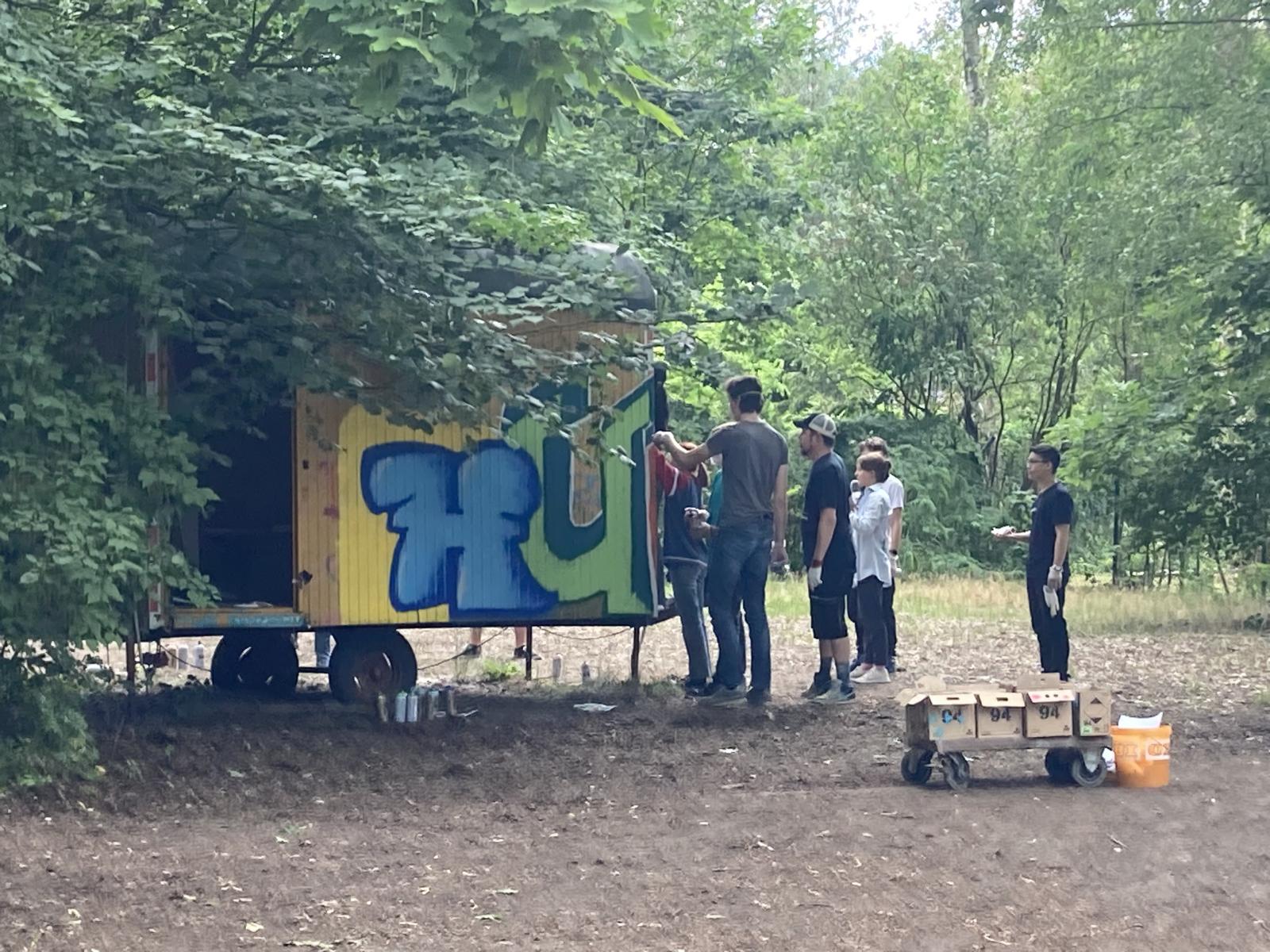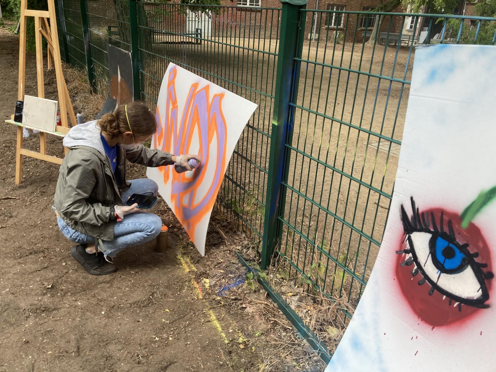28.06. Endlich mal SPRAYEN! 12 Schüler:innen der Klasse 10h beim Graffiti-Workshop