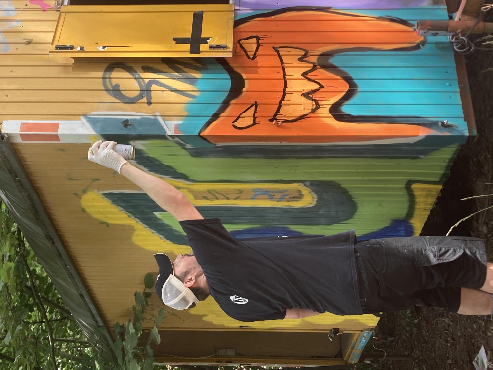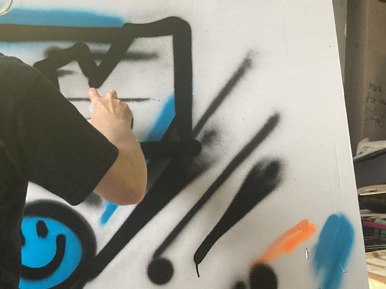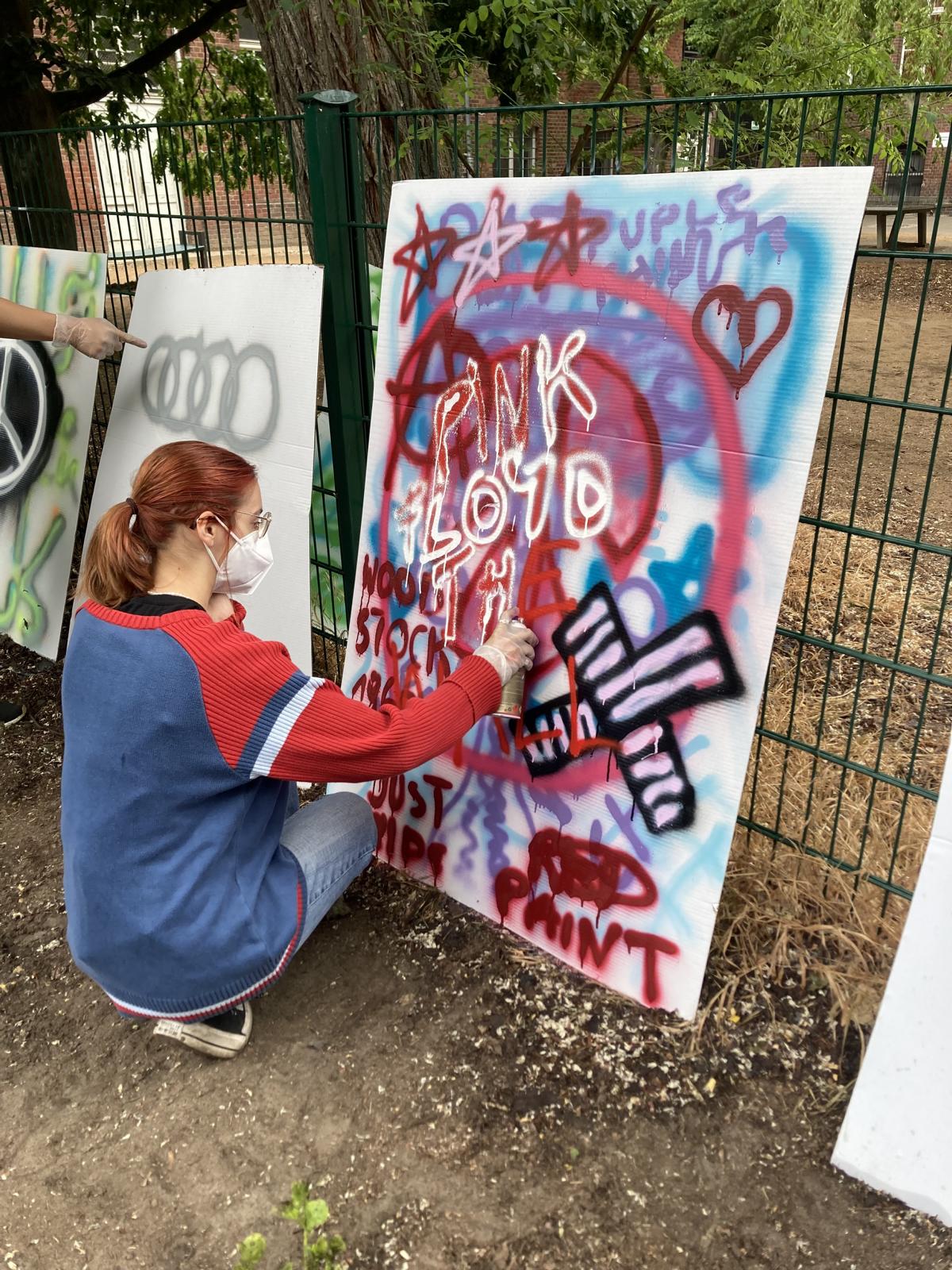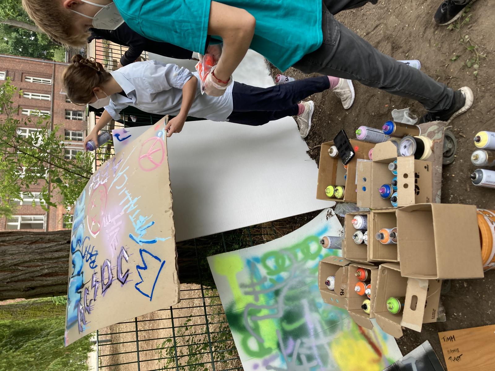 28.06. Endlich mal SPRAYEN! 12 Schüler:innen der Klasse 10h beim Graffiti-Workshop