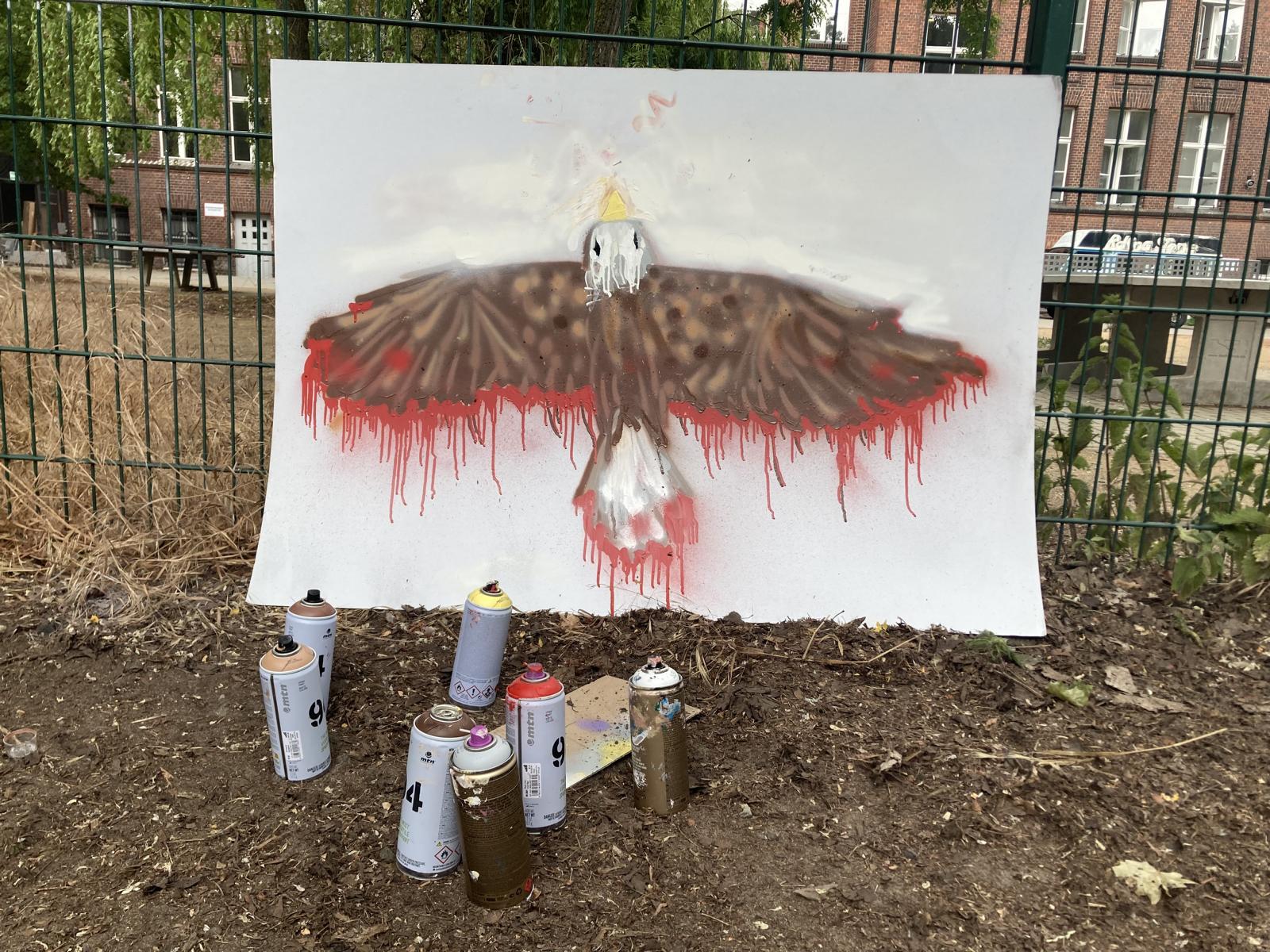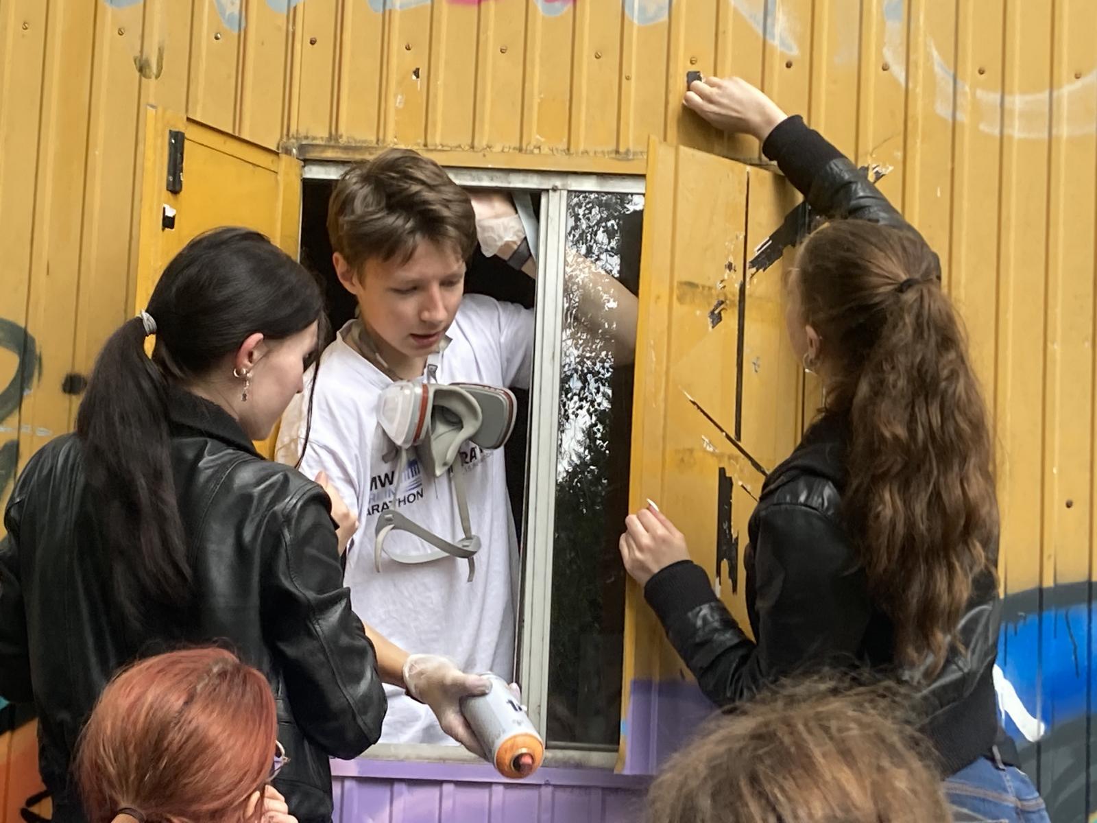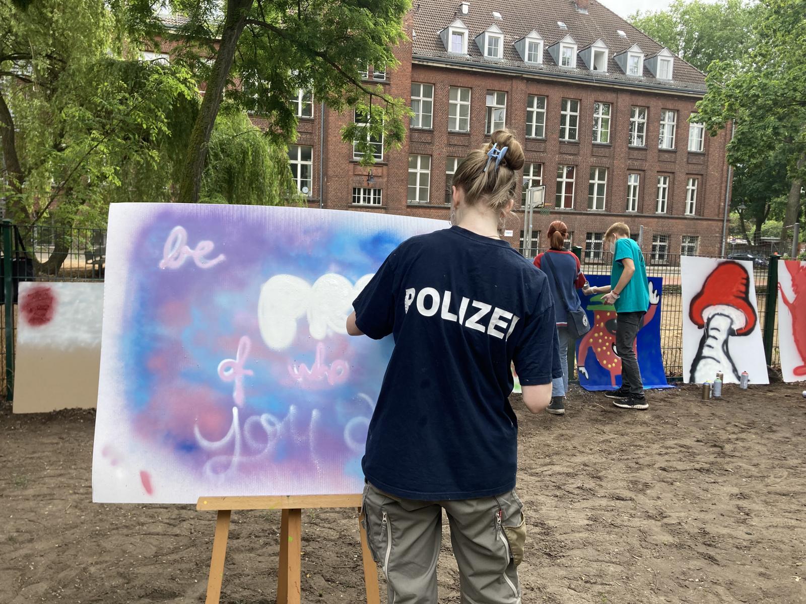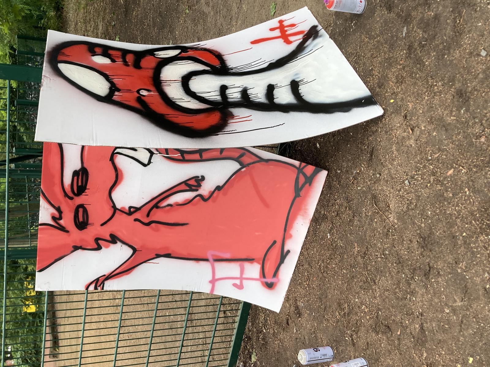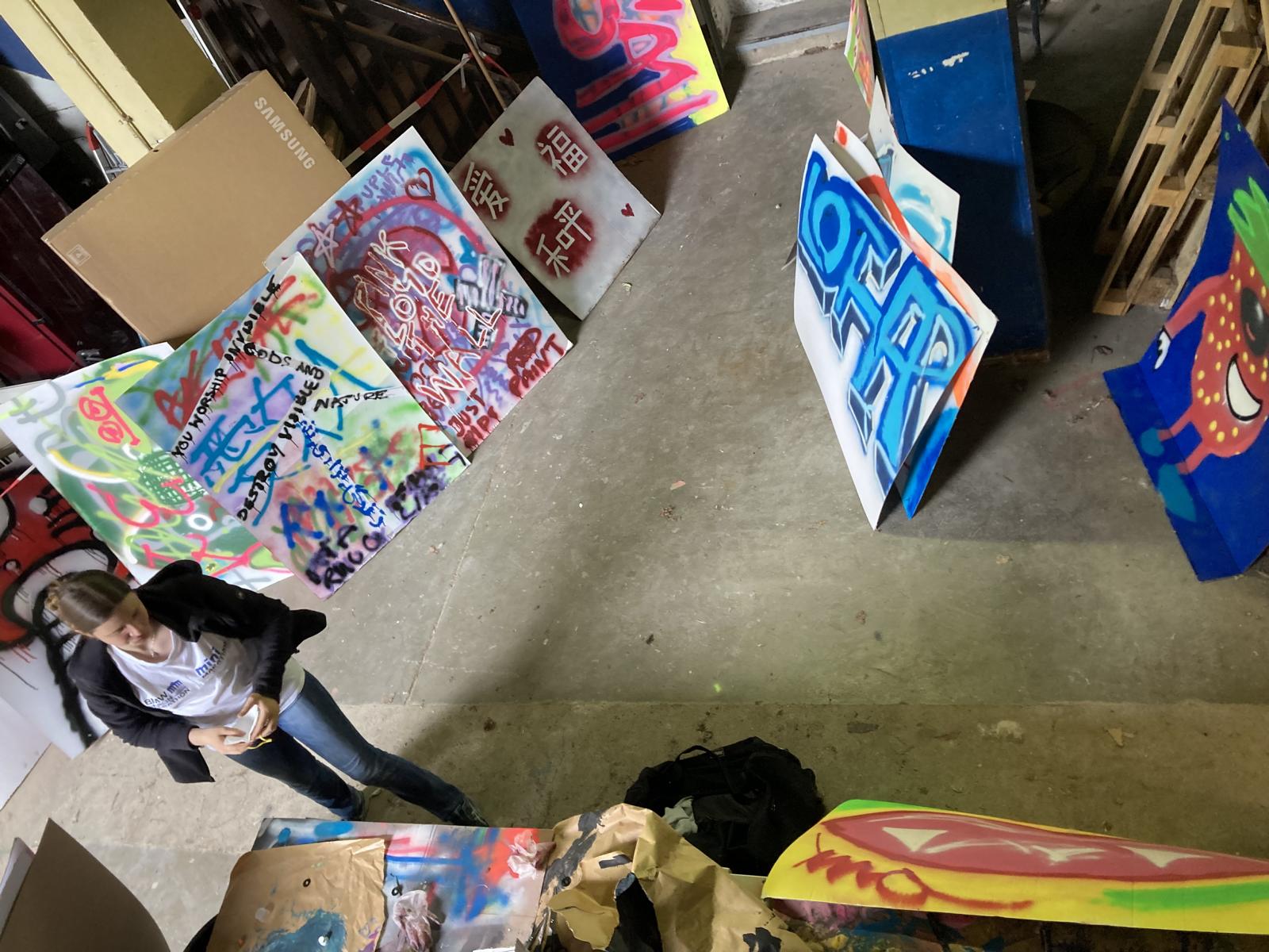 28.06. Endlich mal SPRAYEN! 12 Schüler:innen der Klasse 10h beim Graffiti-Workshop