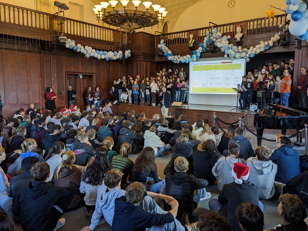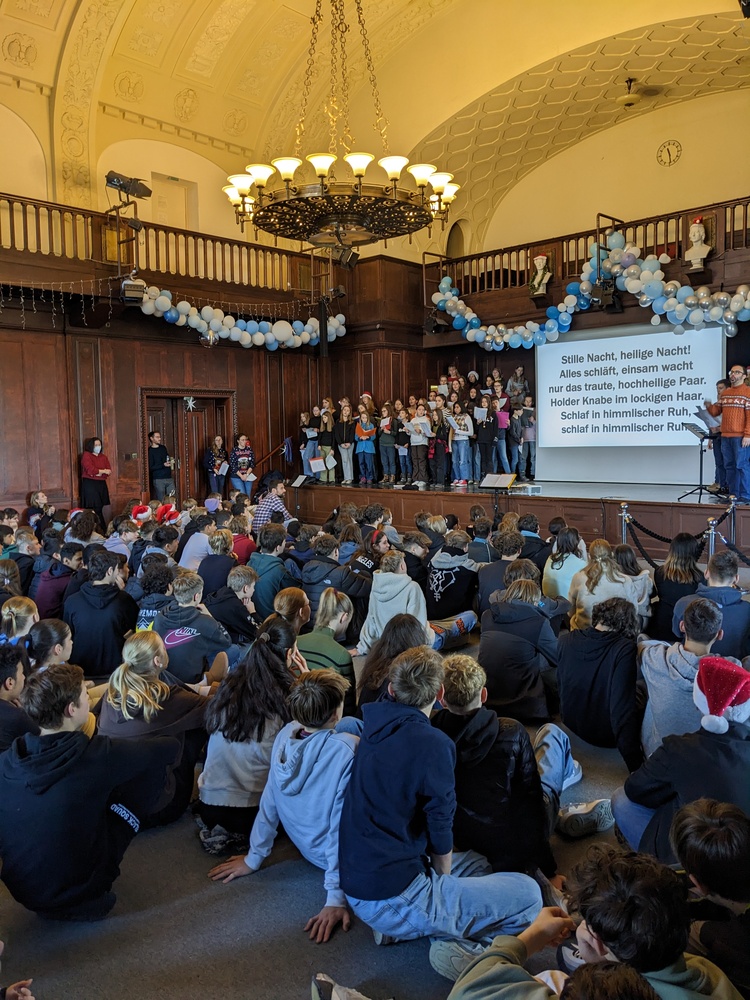Dezember: Weihnachtssingen 2023 am letzten Schultag vor den Ferien