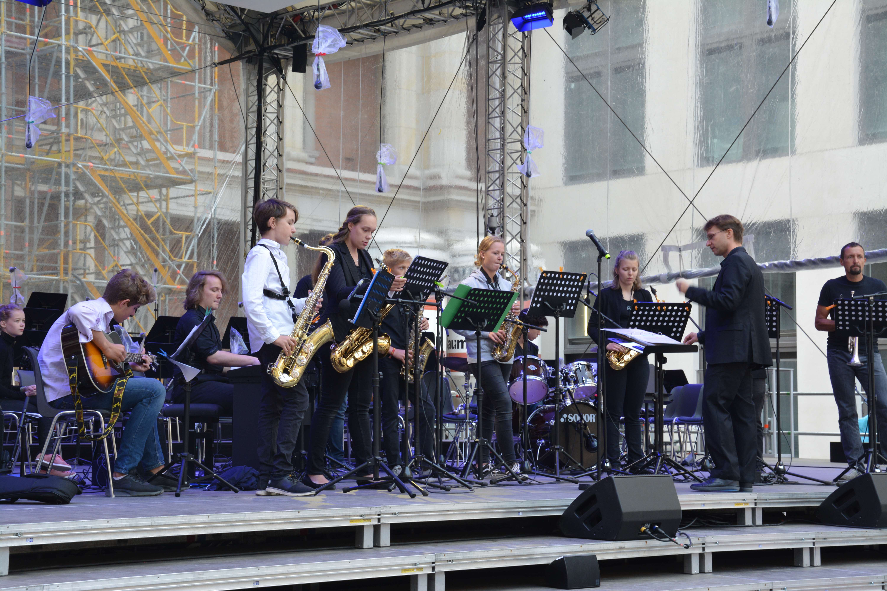 Auftritt der Humboldt Jazz Explorers bei den Tagen der offenen Baustelle am 25.8. im Humboldt Forum im Berliner Schloss