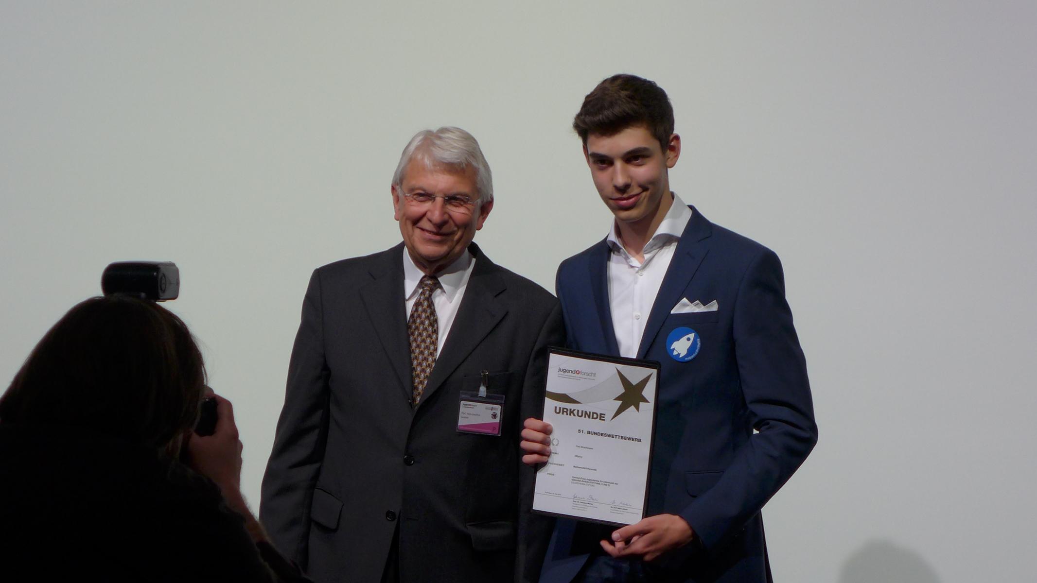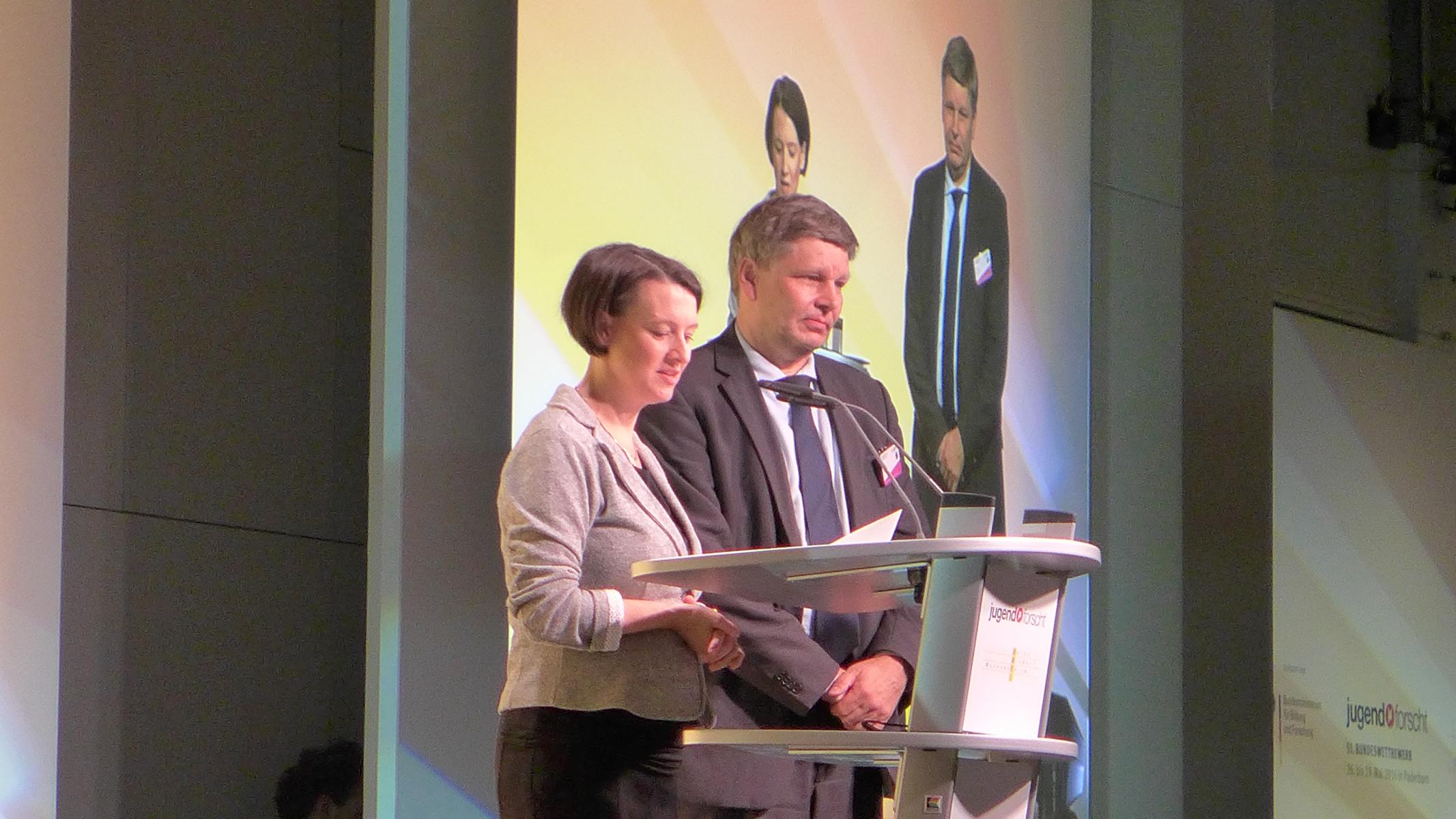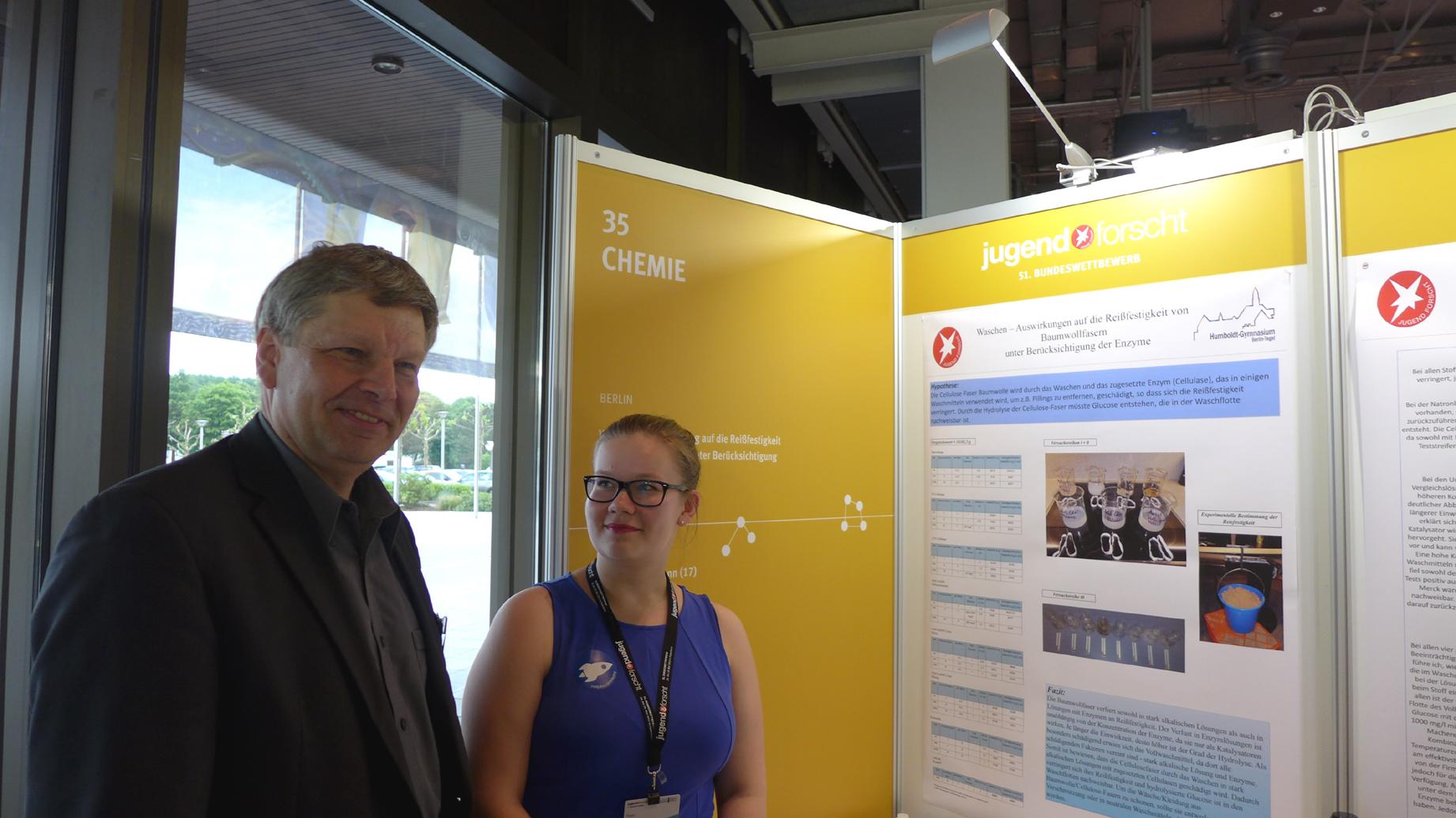 Das Humboldt-Gymnasium wurde beim 51. Bundeswettbewerb Jugend forscht in Paderborn mit dem KMK-Sonderpreis "Jugend forscht Schule 2016" ausgezeichnet. Die Auszeichnung überreichte Dr. Claudia Bogedan, KMK-Präsidentin und Bremer Bildungssenatorin.