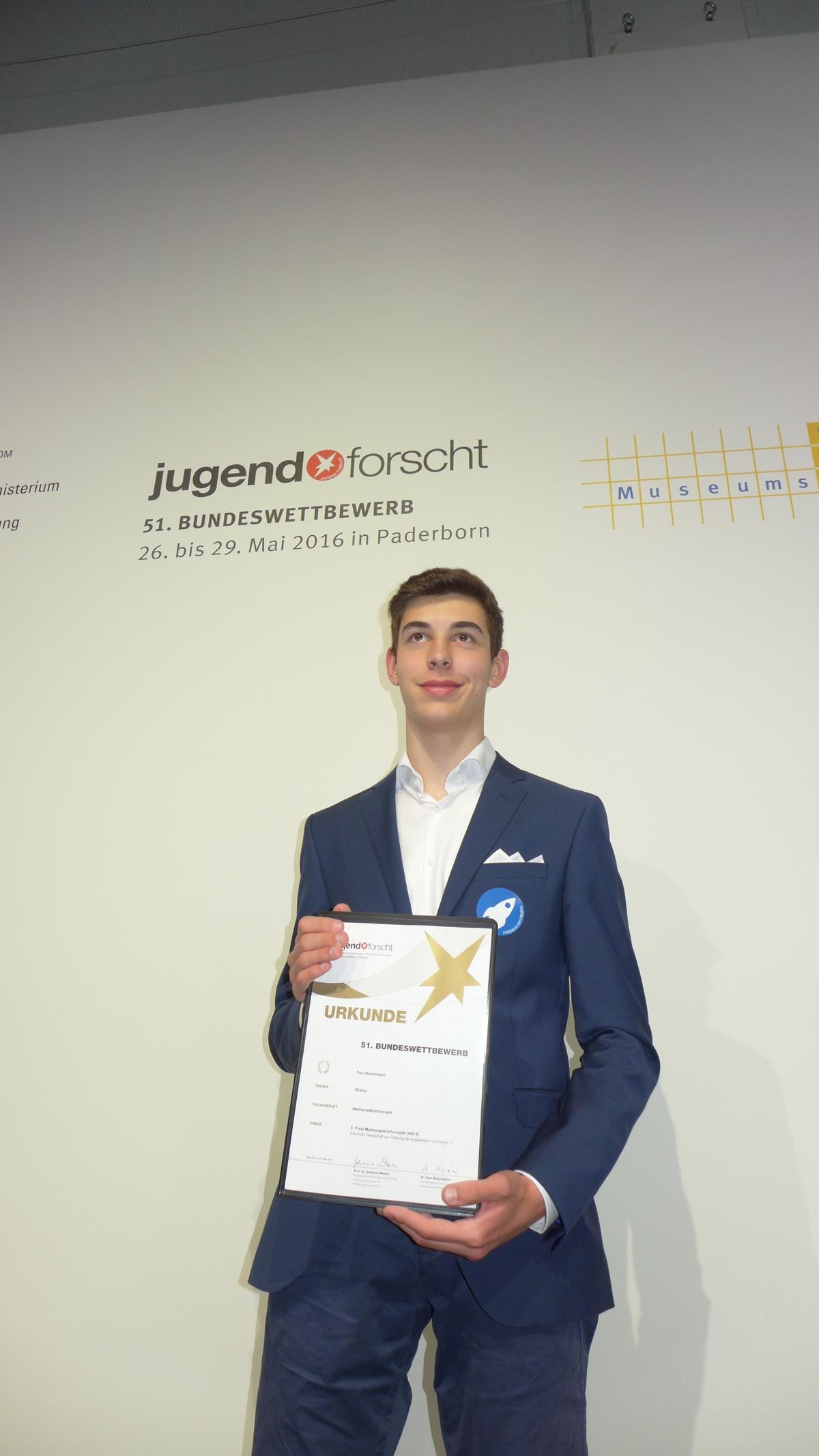 Außerdem gewann Paul Brachmann im Fachgebiet Mathematik/Informatik den 5. Preis der Fraunhofer-Gesellschaft zur Förderung der angewandten Forschung e.V. (500 € und Einladung zum Empfang bei der Bundeskanzlerin mit den Bundessiegern und Platzierten) sowie den "Konrad-Zuse-Jugendpreis für Informatik" der Eduard-Rhein-Stiftung (1 500 € und Einladung zur offiziellen Preisverleihung im Deutschen Museum in München).