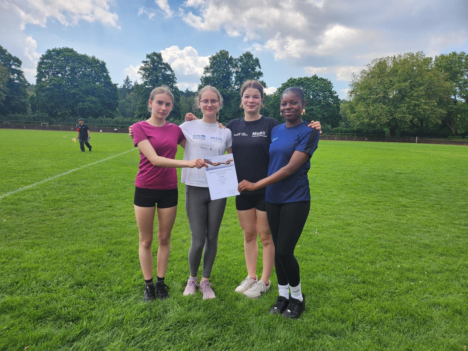 Nach dem Staffelfinale der Grundschulen waren am letzten Donnerstag, den 23.05.2024 die Schüler:innen der Berliner Oberschulen im Stadion Rehberge am Start. Obwohl es an diesem Tag für die Läuferinnen und Läufer eigentlich schulfrei hieß und Eiscafé-Wetter herrschte, repräsentierten 12 Läufer:innen aus den Klassen 6g, 7h, 8a, 8d, 9c, 9h, 10c und 10h mit großem, sportlichen Engagement unsere Schule.