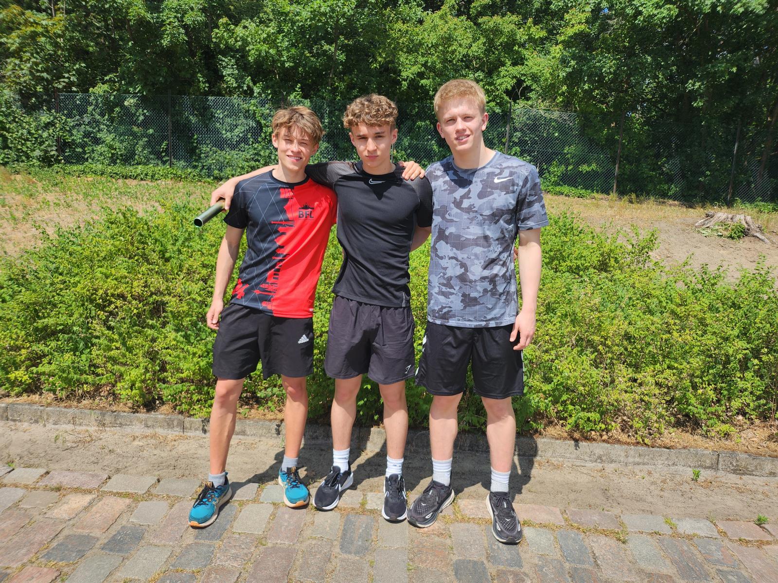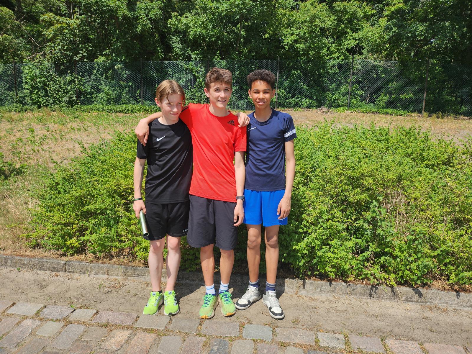 Die 4x100m Staffel der Mädchen (Phoebe, Ida, Liv und Hermine) zeigte untereinander sehr gute Wechsel und wurde mit einem 6. Platz im Finale belohnt. Die Staffeln 3x800m der Jungen (Kilian, Noah und Marley) und Mädchen (Hermine, Ida und Julia) gaben im Finale auch alles und erreichten jeweils einen tollen 5. Platz. Leider ist die zweite Jungen-Staffel 3x800m mit Jakob, Joshua und Vincent disqualifiziert worden, da ein Läufer unserer Schule einen anderen Mitstreiter beim Überholen am Arm touchierte.