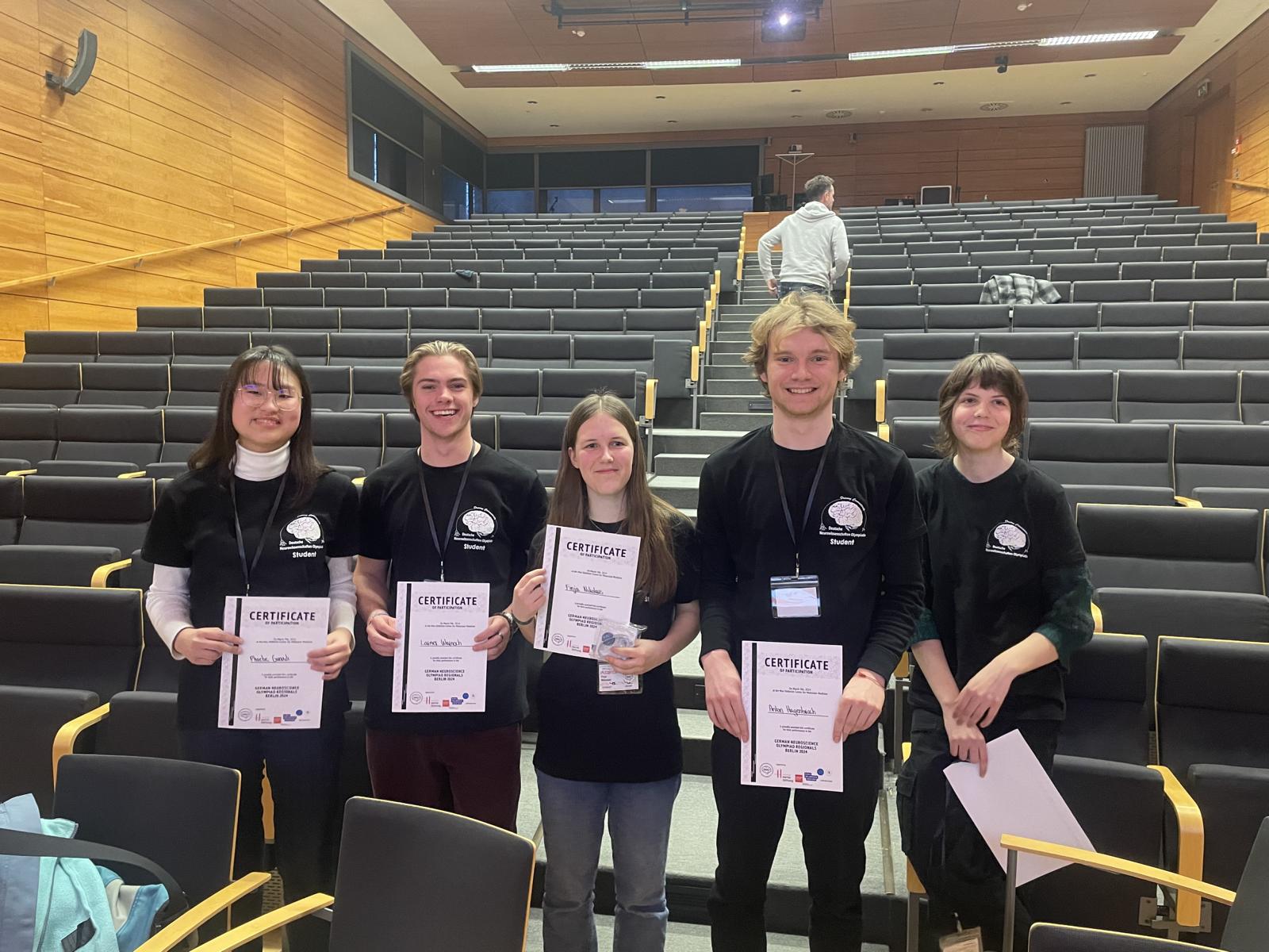 Am 9. März haben die Vorentscheide der Neurowissenschaften-Olympiade für die drei Standorte Heidelberg, Berlin und Bonn stattgefunden. Pro Standort qualifizieren sich die besten 15 Schüler_innen für das große Finale in Frankfurt am Main am 27. April. Von unserer Schule haben sich im Rahmen des Berliner Vorentscheids vier Schüler_innen für das Finale der Neurowissenschaften-Olympiade qualifiziert: Phoebe Gunadi, Finja Nikolaus, Lisa Nefedov und Anton Hagenbruch.