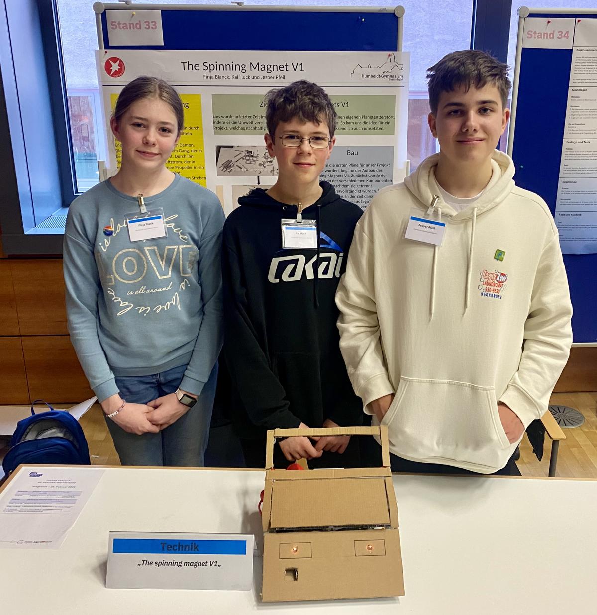 „Macht aus Fragen Antworten“ – diesem Aufruf von Jugend forscht folgten 15 Teilnehmende des Humboldt-Gymnasiums und traten am 26. und 28. Februar beim Regionalwettbewerb Campus Berlin-Buch im Max Delbrück Center an. Verstärkt wurden sie von Emilia, Tim und Theodor von der Grundschule am Tegelschen Ort, die ihr Projekt an unserer Schule erarbeitet haben.