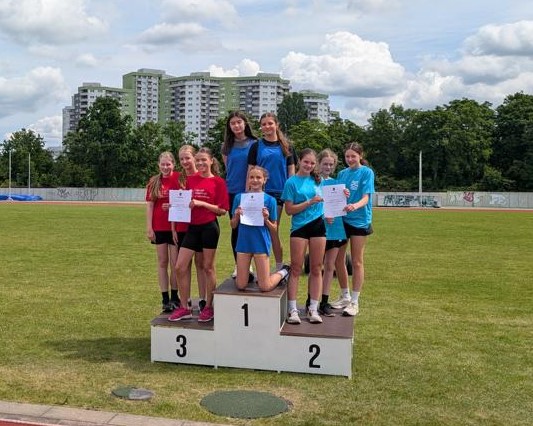 Insgesamt belegten unsere Läuferinnen und Läufer dreimal den 1. Platz (Emily, Lea, Emilia; Tamo, Marley, Max; Hermine, Georgina, Liv) einmal den 2. Platz (Charlotte, Emilia, Atika, Isabella) und zweimal den 3. Platz (Jan, Joshua, Julius; Lotta, Emily, Jule, Hannah).