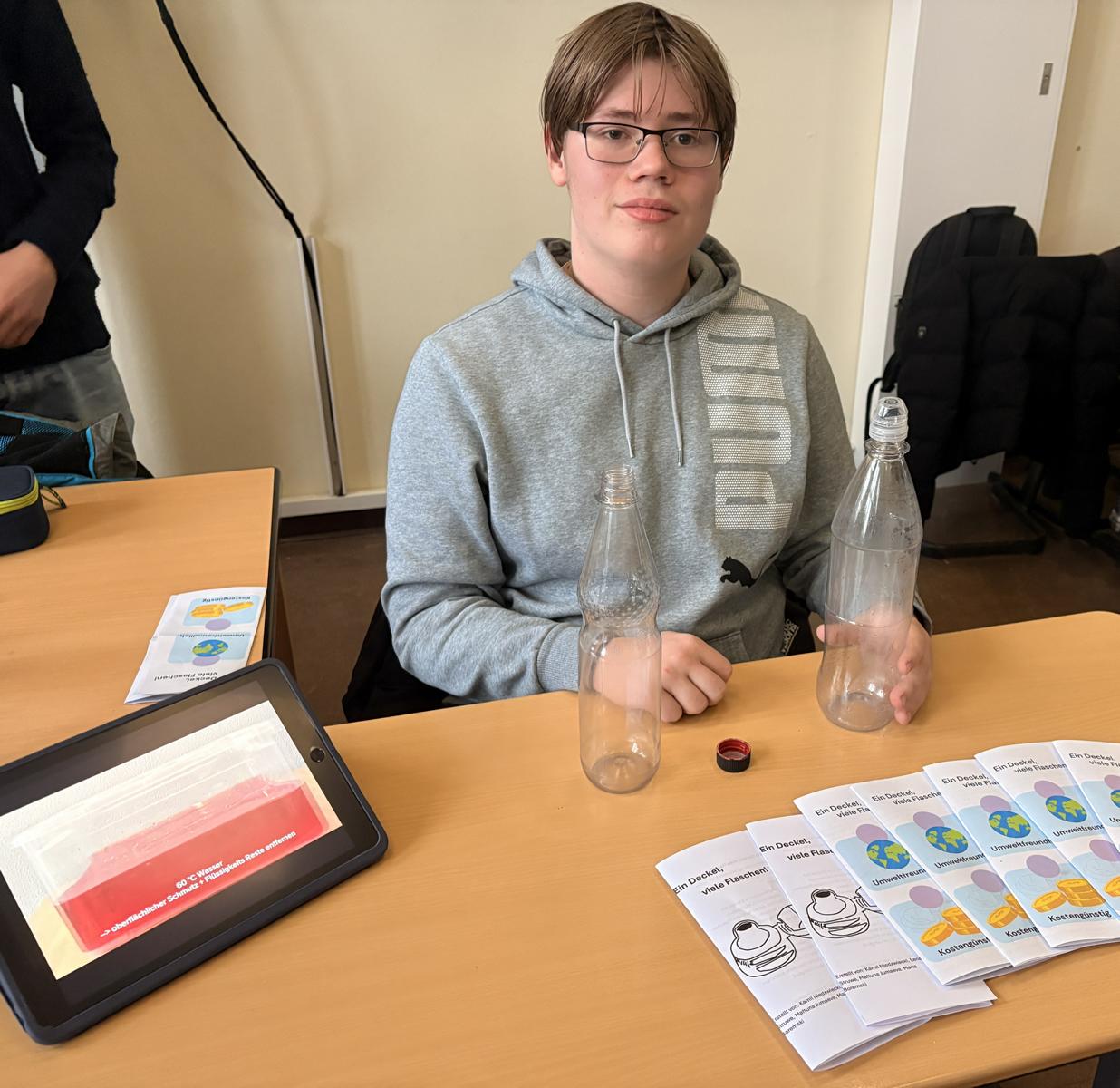 Ein Deckel, viele Flaschen - ein Konzept um PET- Flaschen länger zu nutzen.
