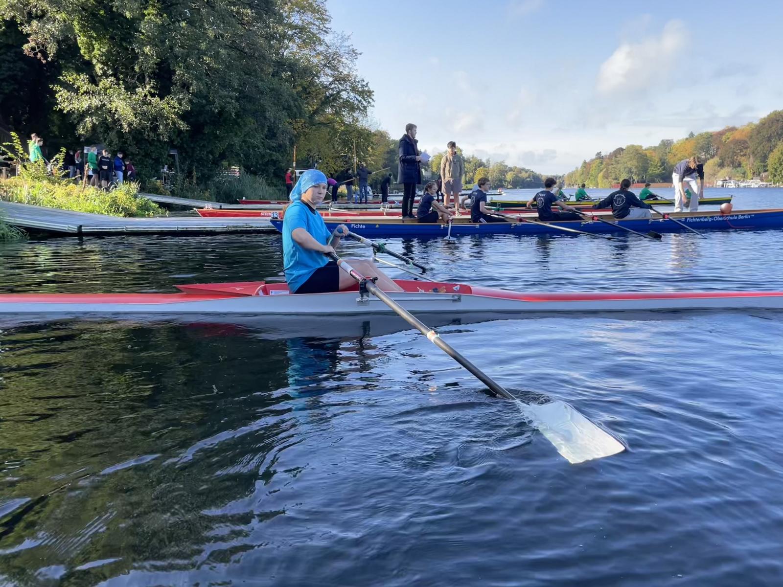 In beiden Kursen erfolgt die Grundausbildung im Skullen mit dem Ziel, die Schüler*innen für ein regelmäßiges Training zu gewinnen und bei den Berliner Schulregatten anzutreten. Danach trennen sich die Wege. Die einen treten in den Ruderverein ein und kämpfen sich zum Teil bis zur Junioren-Europameisterschaft hoch, die anderen, die kein Leistungstraining aufnehmen möchten, rudern fröhlich und nicht weniger motiviert über den Tegeler See und tragen sehr wesentlich zu einer guten Atmosphäre in der Arbeitsgemeinschaft bei.