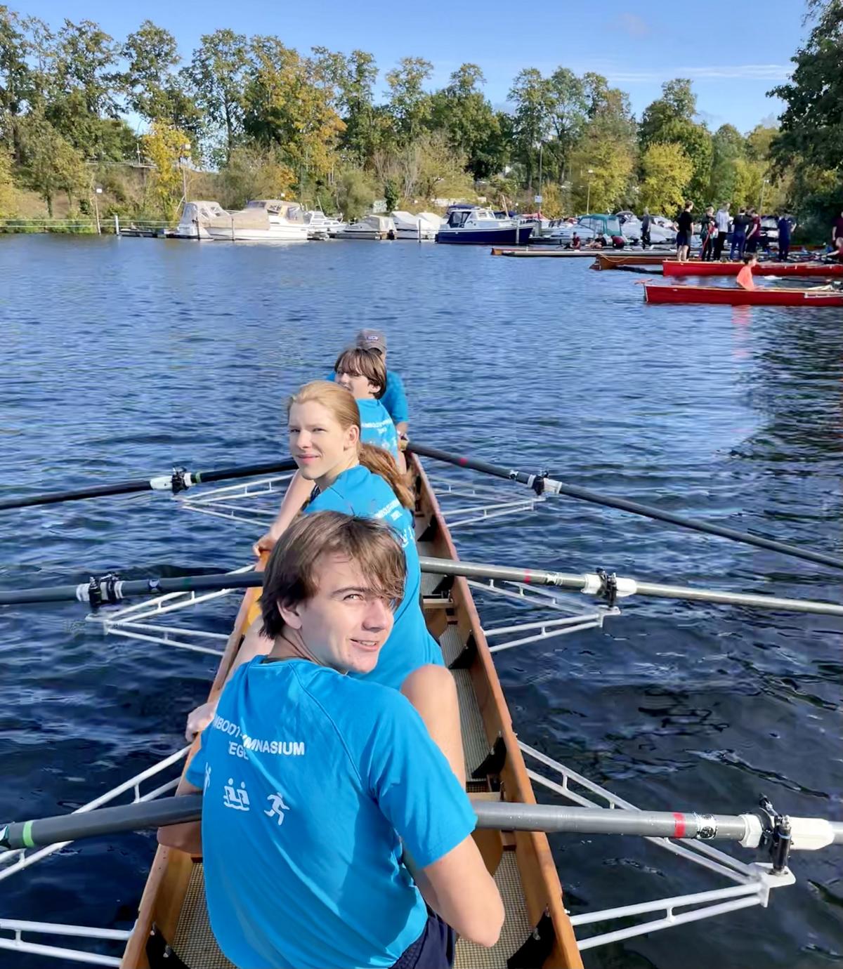 Im Rahmen der Ruder-AG, die vor allem von Schüler*innen der Sekundarstufe I belegt wird, schnuppern die Schüler*innen in den Sport hinein. Sie lernen, dass Rudern etwas ganz anderes als Paddeln und ein großartiger Mannschaftssport ist. Meist werden Schülerinnen und Schüler aus den 5. und 7. Klassen zu einem Eintritt in die Arbeitsgemeinschaft angeregt, viele bleiben jedoch, wenn es der Stundenplan zulässt, bis zum Ende der Sek I dabei; siehe AG-Übersicht.