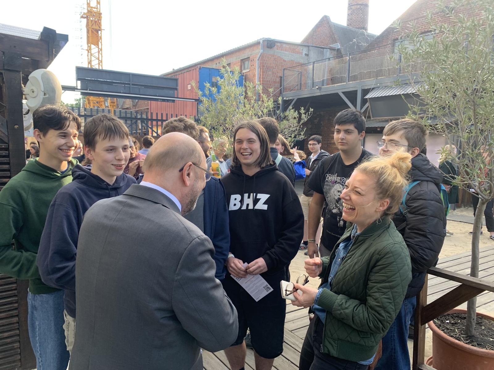 Dass die 9h am selben Tag noch eine Rede des Schirmherren Martin Schulz als Klassenarbeit analysiert hatte und ihm dies persönlich mitteilen konnte, führte letztlich sogar zu einer ehrlich ausgesprochenen Zusage seitens Schulz`, gerne bald zu einem intensiveren Gespräch mit SchülerInnen vorbei zu kommen - wenn wir Glück haben noch vor der Europawahl!