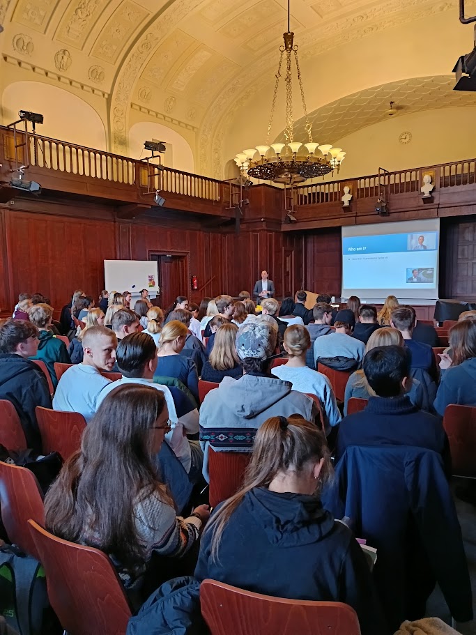 Am 31.01.2024 trafen sich gut 100 Schüler*innen und Lehrer*innen vorwiegend aus den Leistungskursen Wirtschaft und Informatik des Gabriele-von-Bülow-Gymnasiums und des Humboldt-Gymnasiums zum Vortrag von Tassilo Kubitz, der Projektleiter bei der adesso SE ist, einem der führenden IT-Dienstleister in Deutschland. Das Thema lautete: „Warum Agilität die Antwort auf die Anforderungen der Arbeitswelt von morgen ist. Was bedeutet es, agil zu sein?“