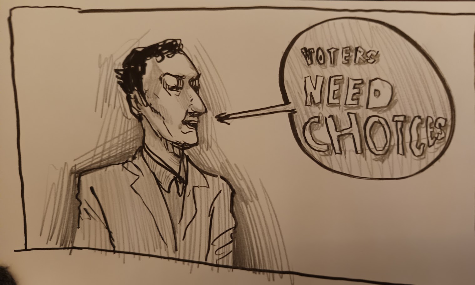 Cartoon während der Lecture gezeichnet von Elia Bierhals, Q1