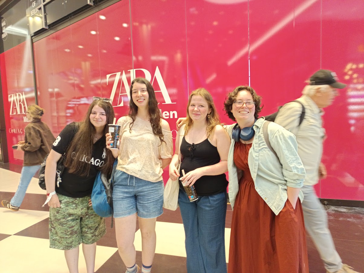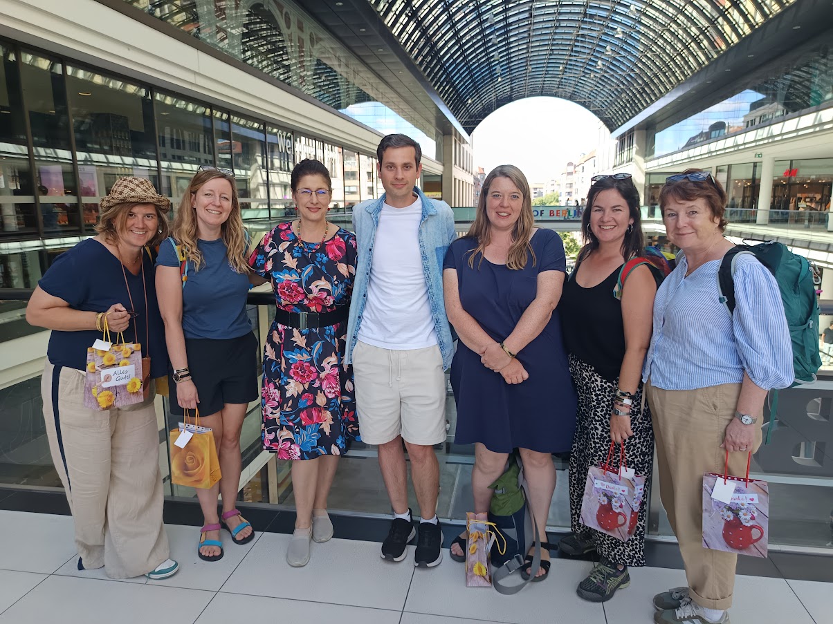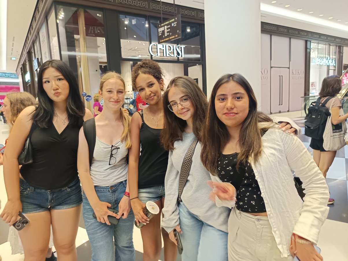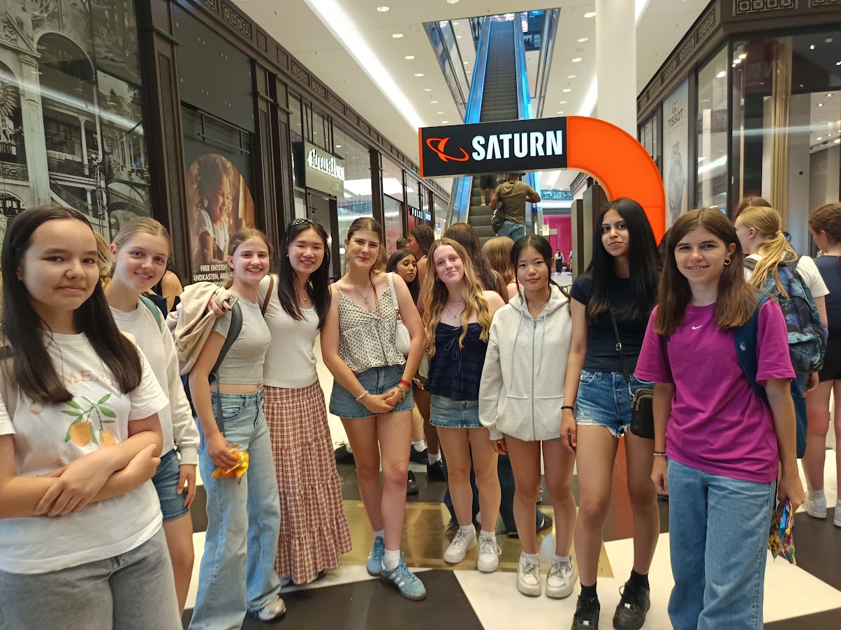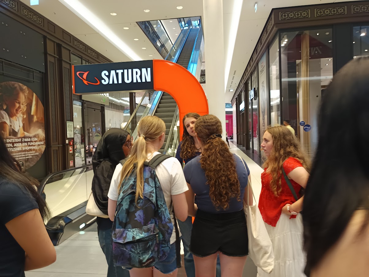 Es gab heute eine besondere Begegnung in Berlin: Die Klasse 9g hatte seit einiger Zeit eine Brieffreundschaft mit einer Londoner Schulklasse aufgebaut. Durch einen Kontakt von Frau Diem aus der Cafeteria kam der Kontakt mit der Coombe School for Girls https://www.coombegirlsschool.org/ zustande. Zufällig war diese Klasse nur wenige Wochen später auf Klassenfahrt in Berlin, und gemeinsam mit ihrer Lehrerin, Frau Elliott, organisierten wir kurzerhand ein Treffen unserer beiden Schülergruppen. Das Programm der englischen Gruppe ermöglichte uns, ein zweistündiges Walk and Talk in der Mall of Berlin zum Kennenlernen in gemischten Gruppen zu veranstalten.