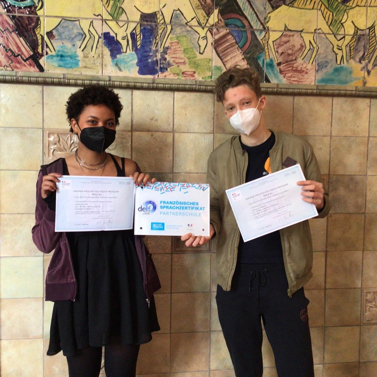 Der Fachbereich Französisch gratuliert Maita Murandu und Friedrich von Nussbaum. Die Abiturient:innen haben die international anerkannte Sprachprüfung mit exzellenten Ergebnissen bestanden und damit nachweislich das B2-Niveau erreicht.
